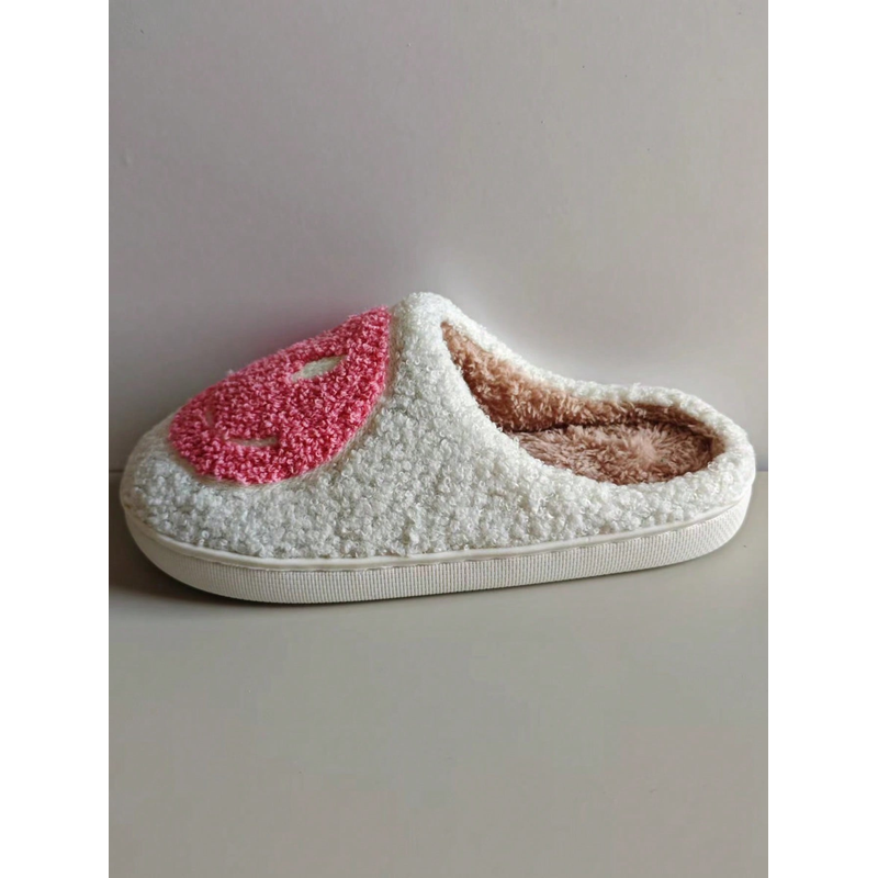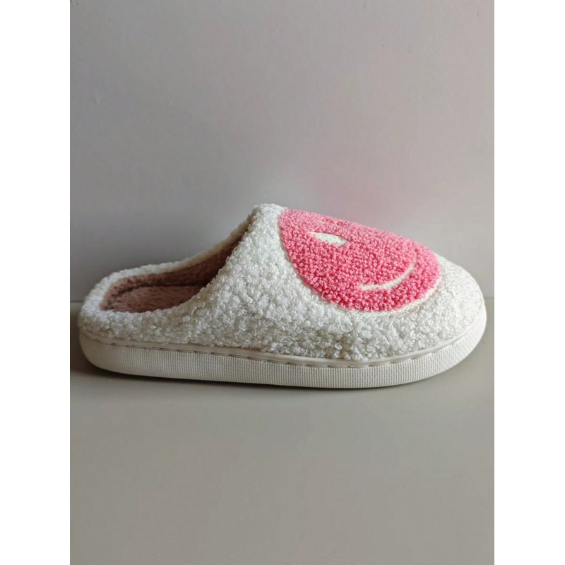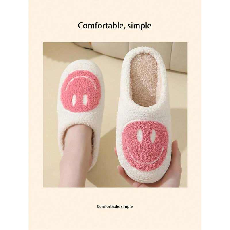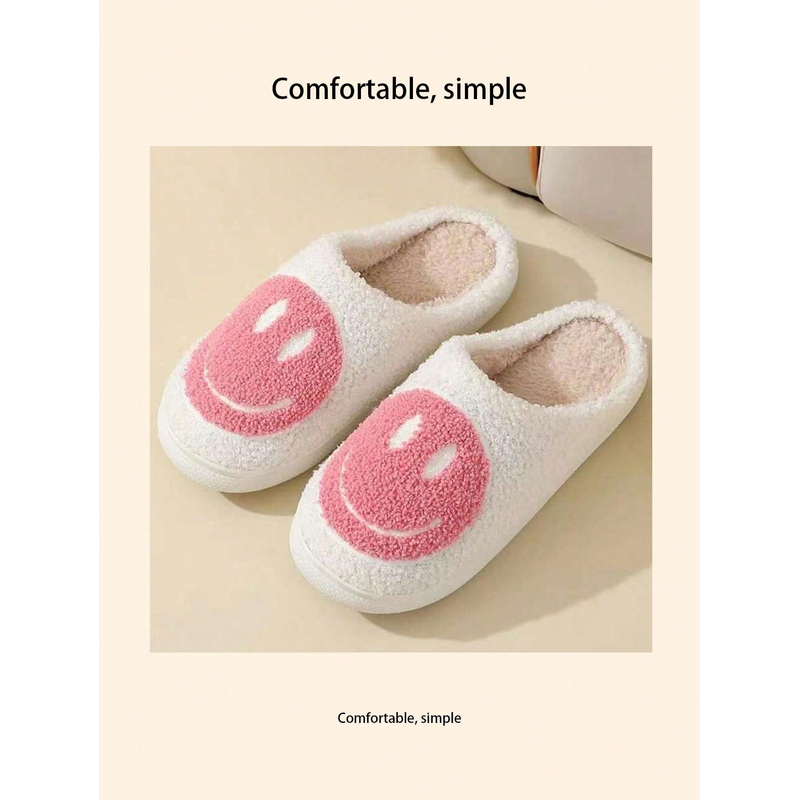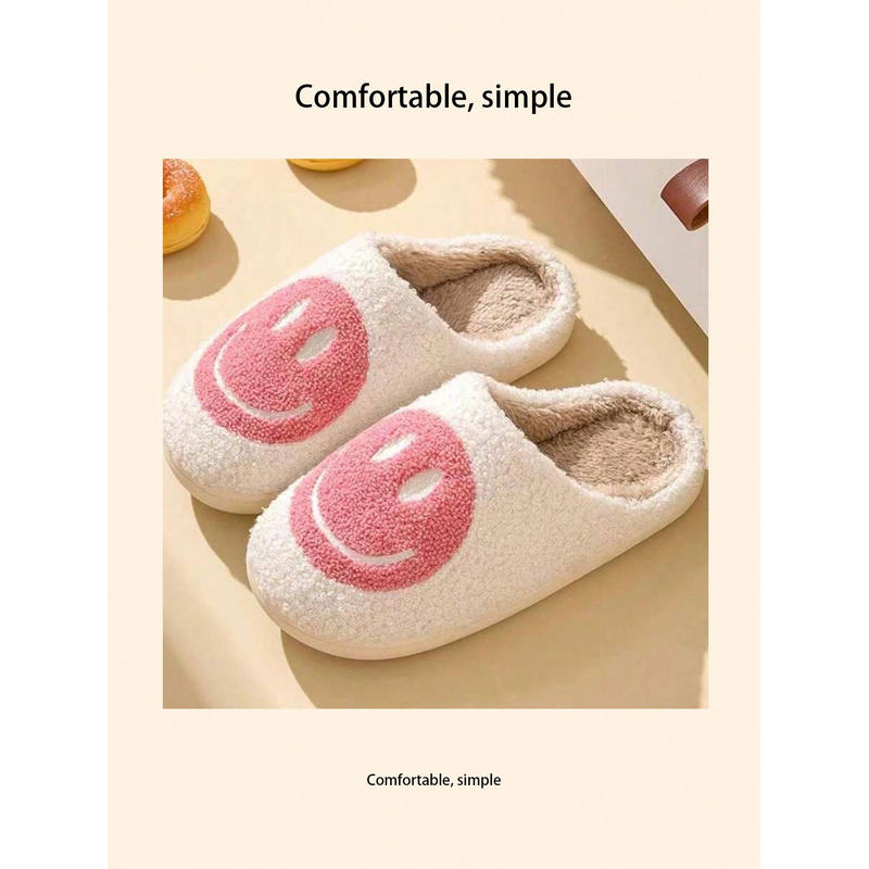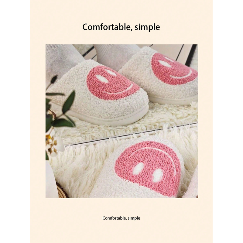 Home slippers, smiling expression fleece slippers, comfortable floor slippers, clown smiling face, indoor thickened warm slipper