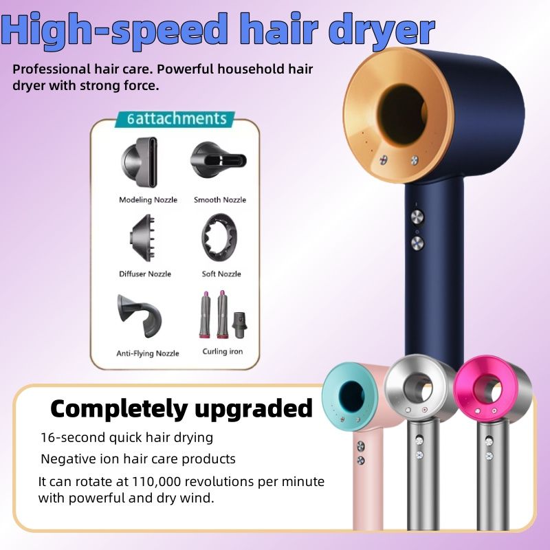 Home-use high-speed negative ion wireless hair dryer. Powerful airflow, curling nozzle, suitable for professional hair care.
