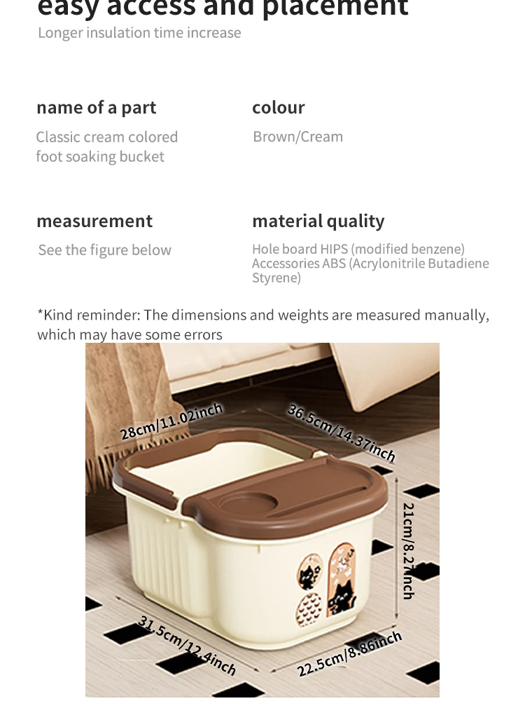 This product is an autumn and winter home health foot bath tub (thickened insulation calf protection massage version with handle), a home health essential integrating thickened temperature locking, calf soaking, foot massage and portable grip. Specially designed to solve the pain points of rapid water temperature drop, difficult calf soaking and low massage comfort during foot soaking in autumn and winter, it makes foot soaking warmer, healthier and more convenient in cold seasons.