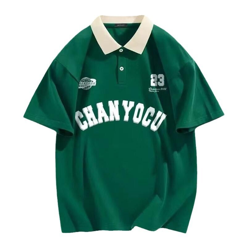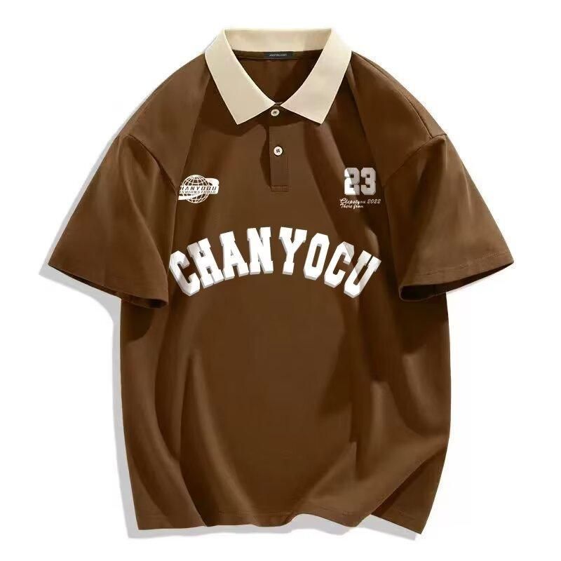 Hong Kong Style Polo Collar College Style Short Sleeve T-shirt Brown L