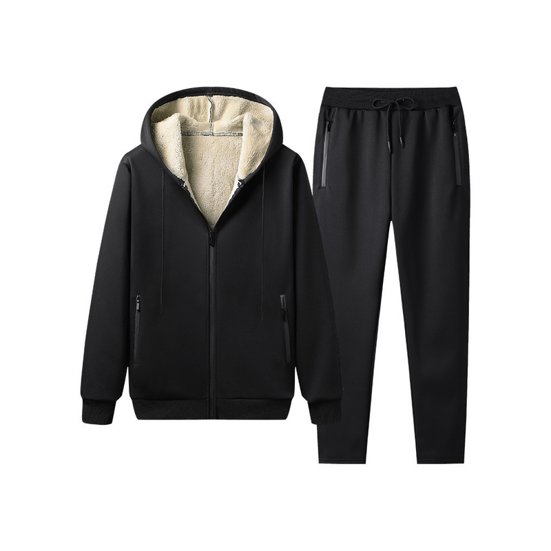 Hooded Casual Fashionable Warm Trousers Suit Black M