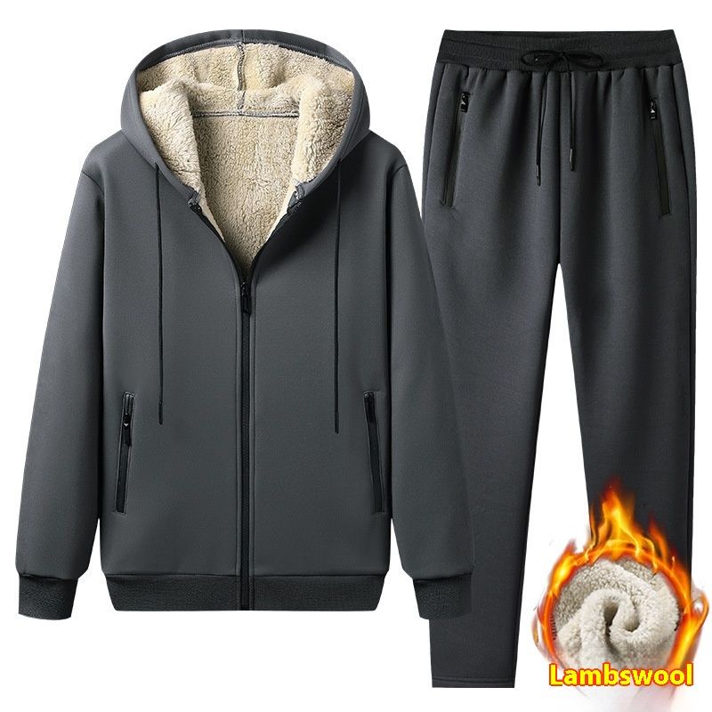 Hooded Casual Fashionable Warm Trousers Suit Gray XL