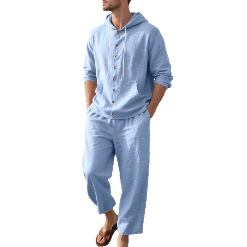 Hooded Long-sleeved Shirt Trousers Casual Suit Men Gray L