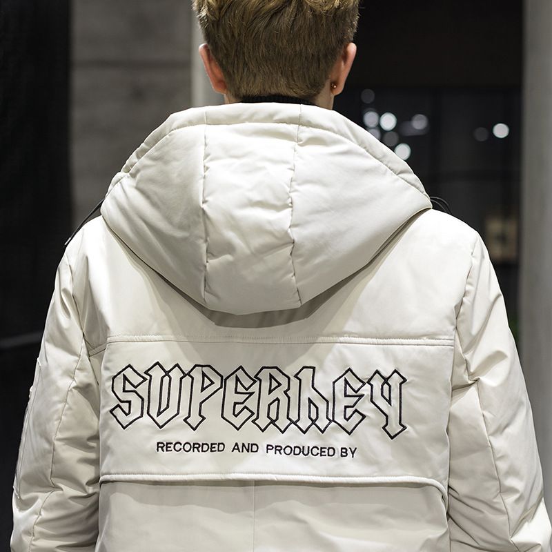Hooded thick warm down jacket White M