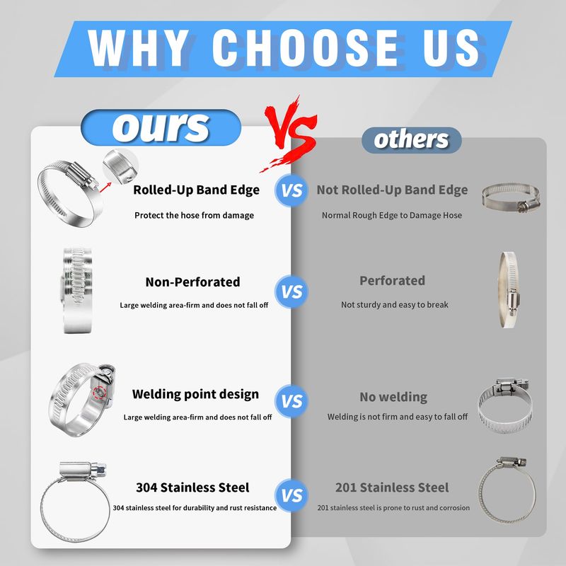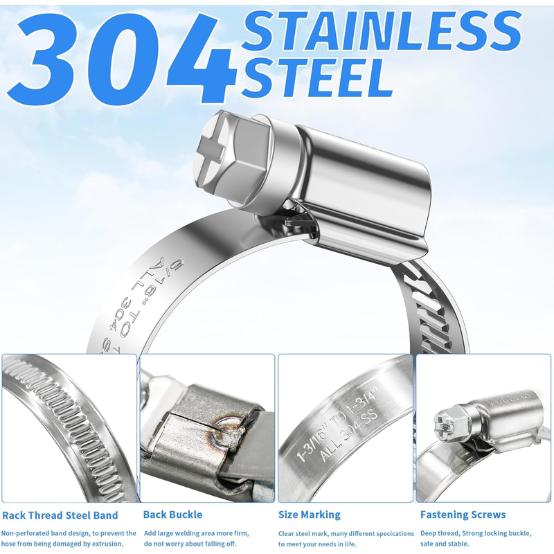 These worm gear hose clamp is made of 304 stainless steel and have excellent corrosion resistance. They can resist the erosion of various chemicals, making them suitable for various industrial environments and harsh conditions, ensuring long-term stability of the pipeline system.