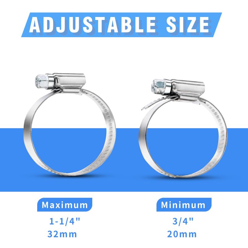 Hose Clamps 304 Stainless Steel 8-70mm Adjustable German Worm Gear Mini Metal Pipe Hose Clamp Fuel Line Heavy Duty Tube Clamp