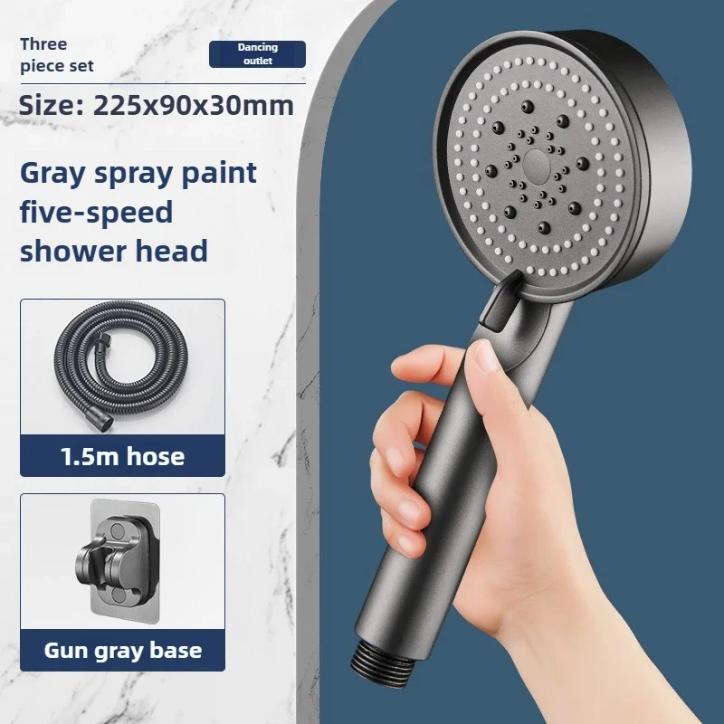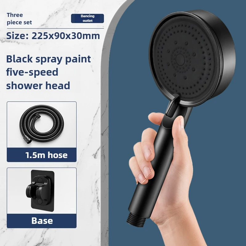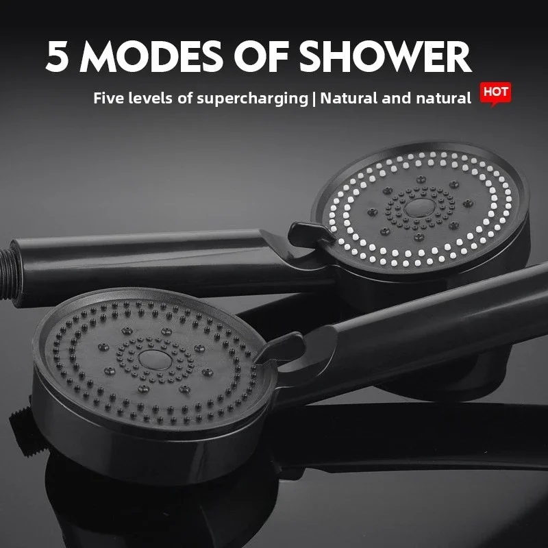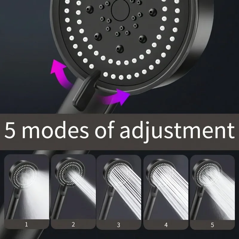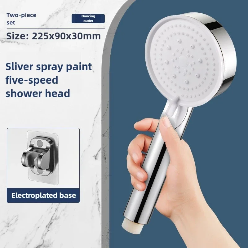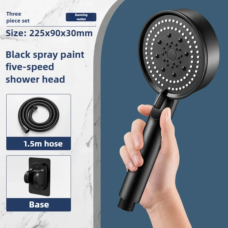Hose with bracket, round plastic bathroom accessories,5-Speed water flow adjustment, high-pressure handheld shower head