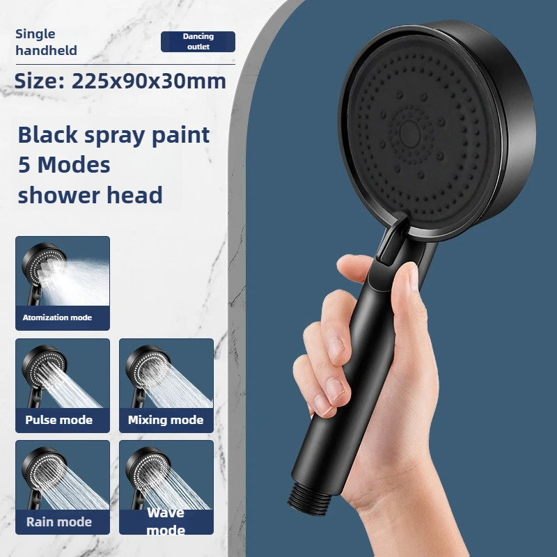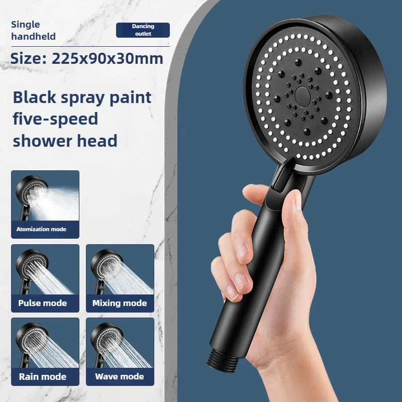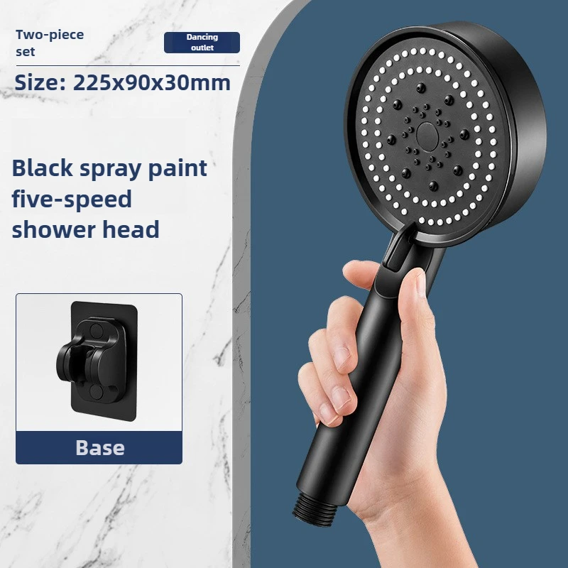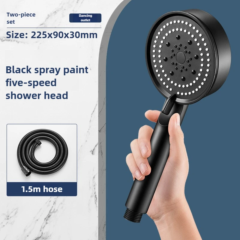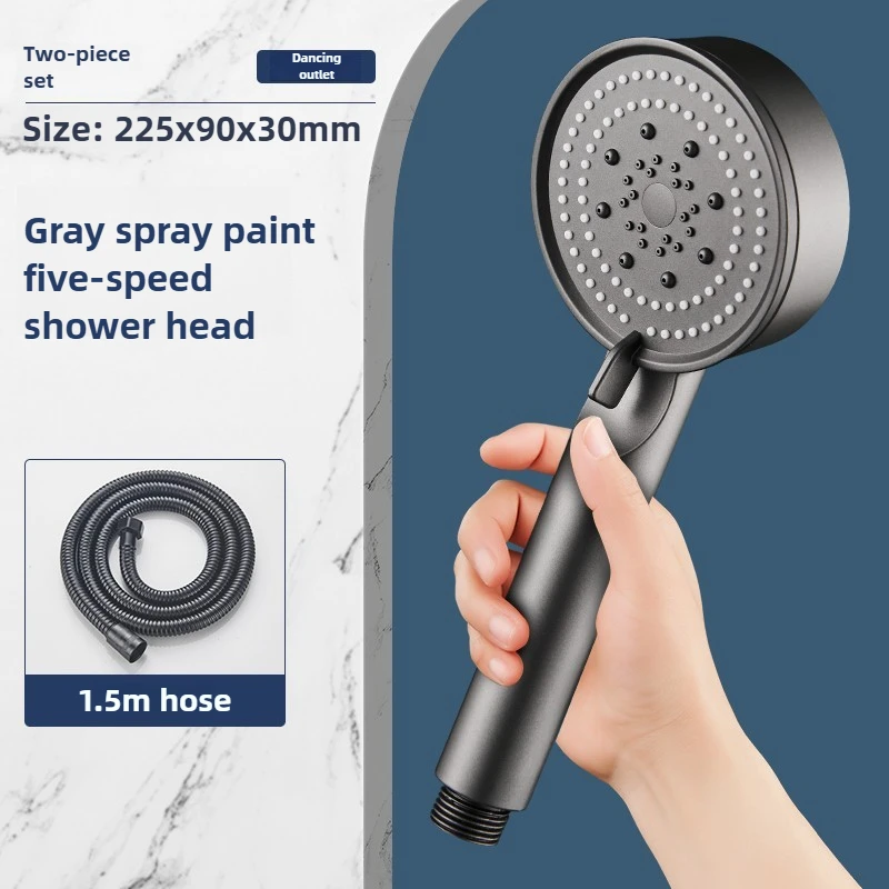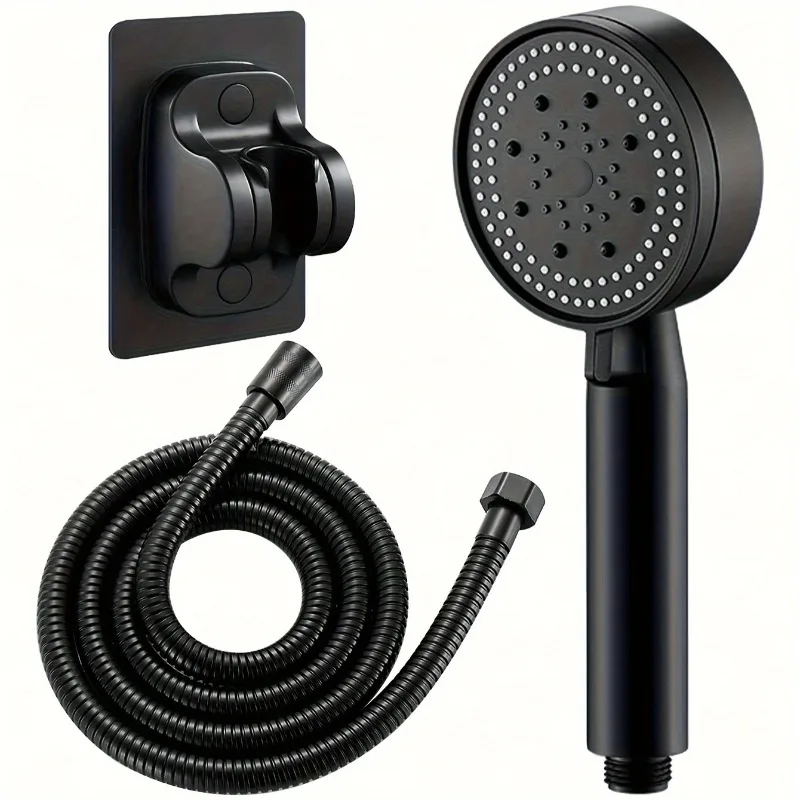 Hose with bracket, round plastic bathroom accessories,5-Speed water flow adjustment, high-pressure handheld shower head