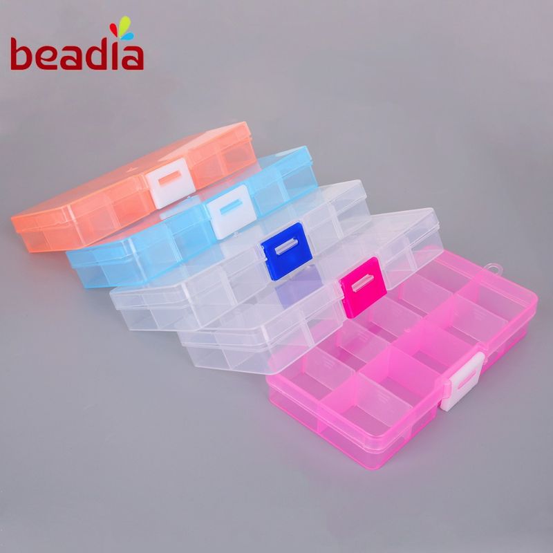 Hot 10 Slots Cells Transparent Plastic Acrylic Beading Storage Box Organizar Adjustable Splittable For Jewelry Packaging