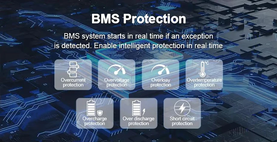 Overcharge protection, overdischarge protection, temperature protection, short circuit protection, overload protection