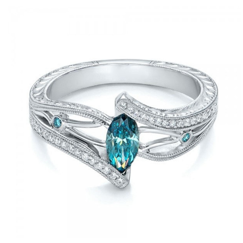 Hot European and American luxury aquamarine topaz engagement ring Bule 7