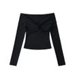 Hot Girl Sexy Twisted Off-shoulder Sexy Off-shoulder Long Sleeve Black S