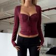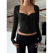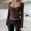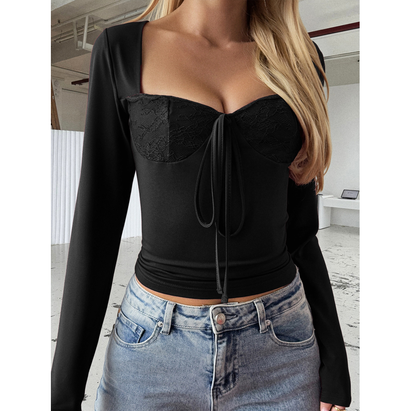 Hot Girl Women's Lace Long-sleeved Bottoming Shirt T-shirt Black S