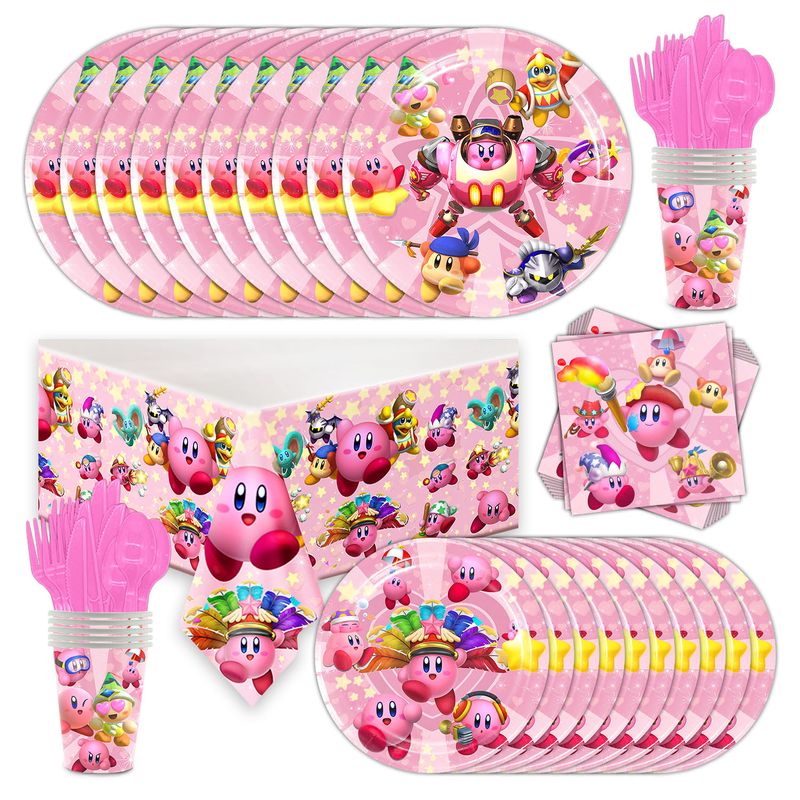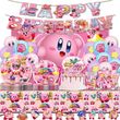 Hot kawaii Star Kirby Birthday Party cutlery plate Disposable Banner Cake Topper Hanging Flag Kirby‌ Balloon Birthday Decoration