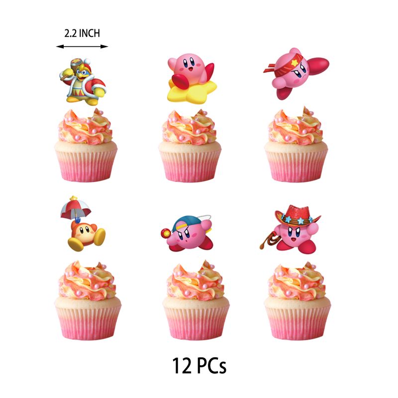 Hot kawaii Star Kirby Birthday Party cutlery plate Disposable Banner Cake Topper Hanging Flag Kirby‌ Balloon Birthday Decoration