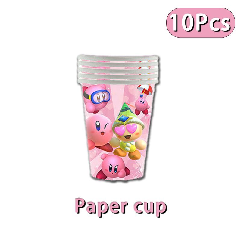 Hot kawaii Star Kirby Birthday Party cutlery plate Disposable Banner Cake Topper Hanging Flag Kirby‌ Balloon Birthday Decoration