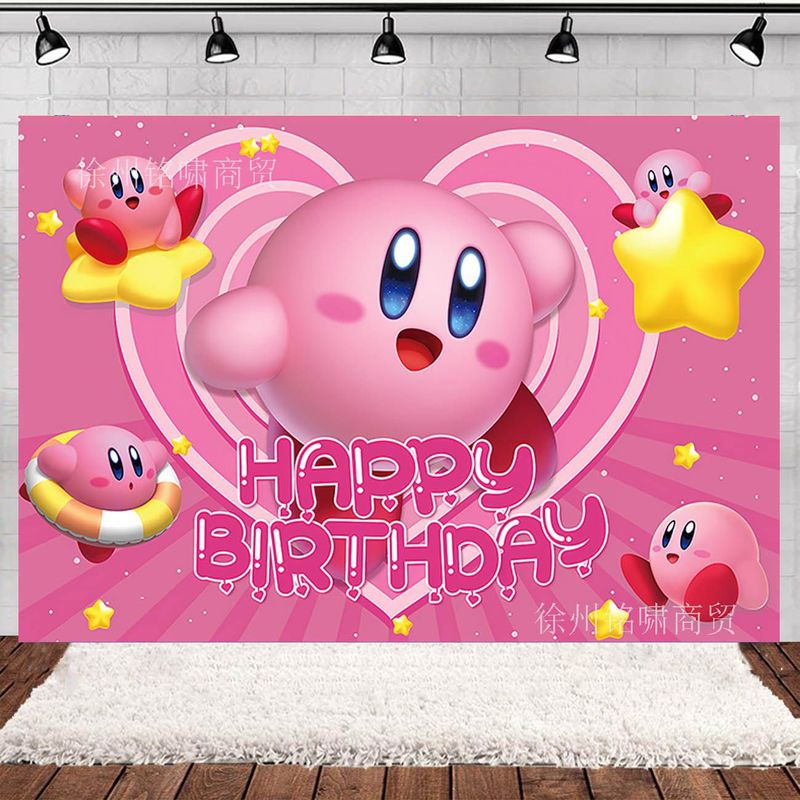 Hot kawaii Star Kirby Birthday Party cutlery plate Disposable Banner Cake Topper Hanging Flag Kirby‌ Balloon Birthday Decoration