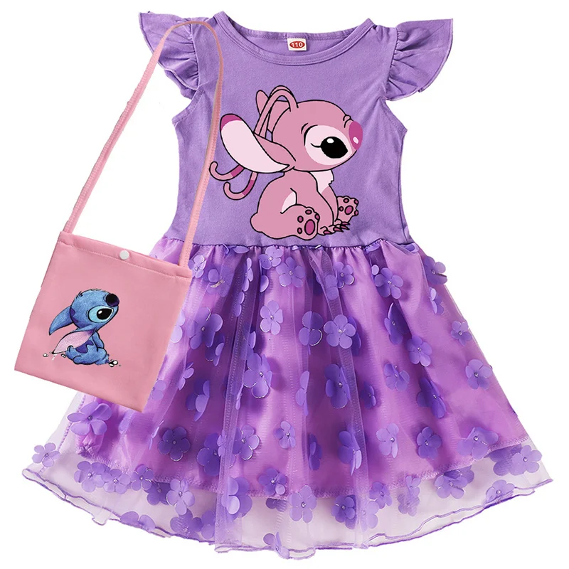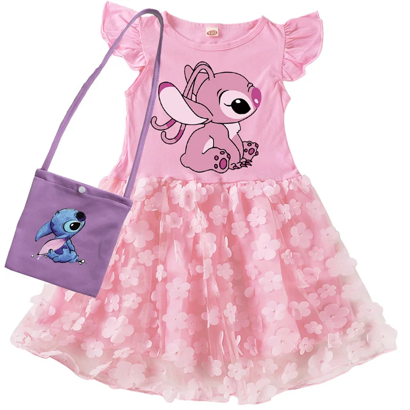 Hot Lovely Lilo And Stitch Dresses for Girls Cartoon Cute Cotton Short Sleeve Princess Dress Children Prom Mesh Skirt Vestidos