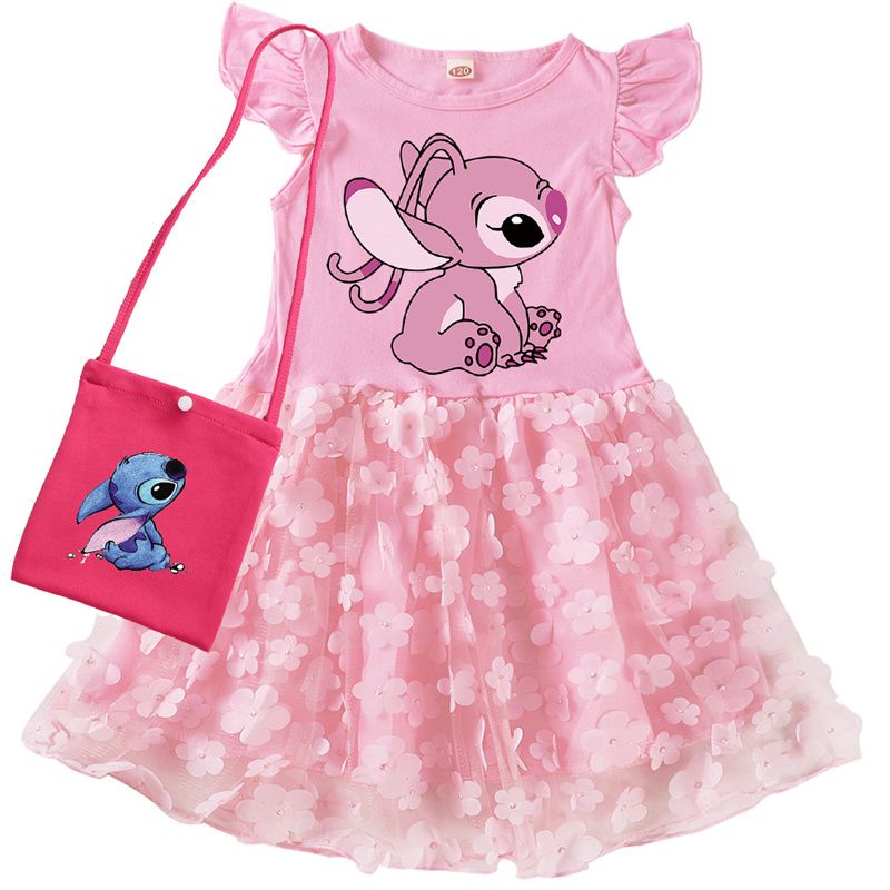 Hot Lovely Lilo And Stitch Dresses for Girls Cartoon Cute Cotton Short Sleeve Princess Dress Children Prom Mesh Skirt Vestidos