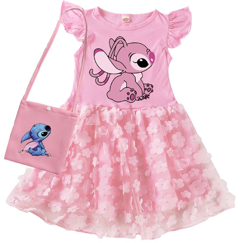 Hot Lovely Lilo And Stitch Dresses for Girls Cartoon Cute Cotton Short Sleeve Princess Dress Children Prom Mesh Skirt Vestidos