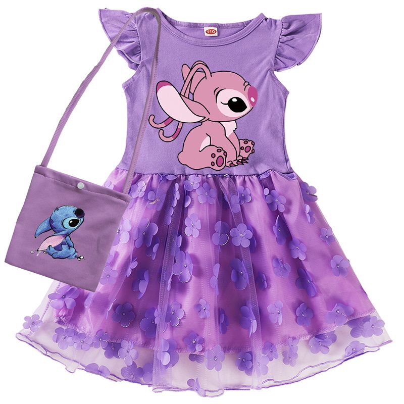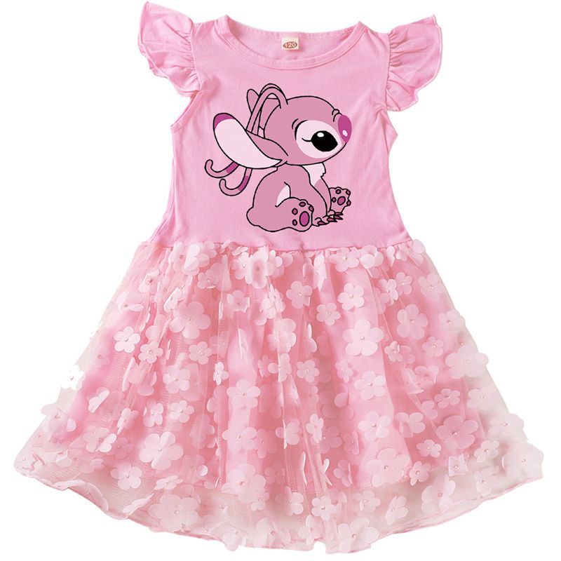 Hot Lovely Lilo And Stitch Dresses for Girls Cartoon Cute Cotton Short Sleeve Princess Dress Children Prom Mesh Skirt Vestidos
