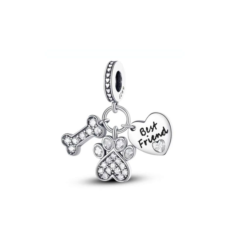 Hot New 925 Silver Dog Charm Bead Fit Original Bracelet Women DIY Accessories Jewelry Gift dog paw dog bone safety chain Pendant