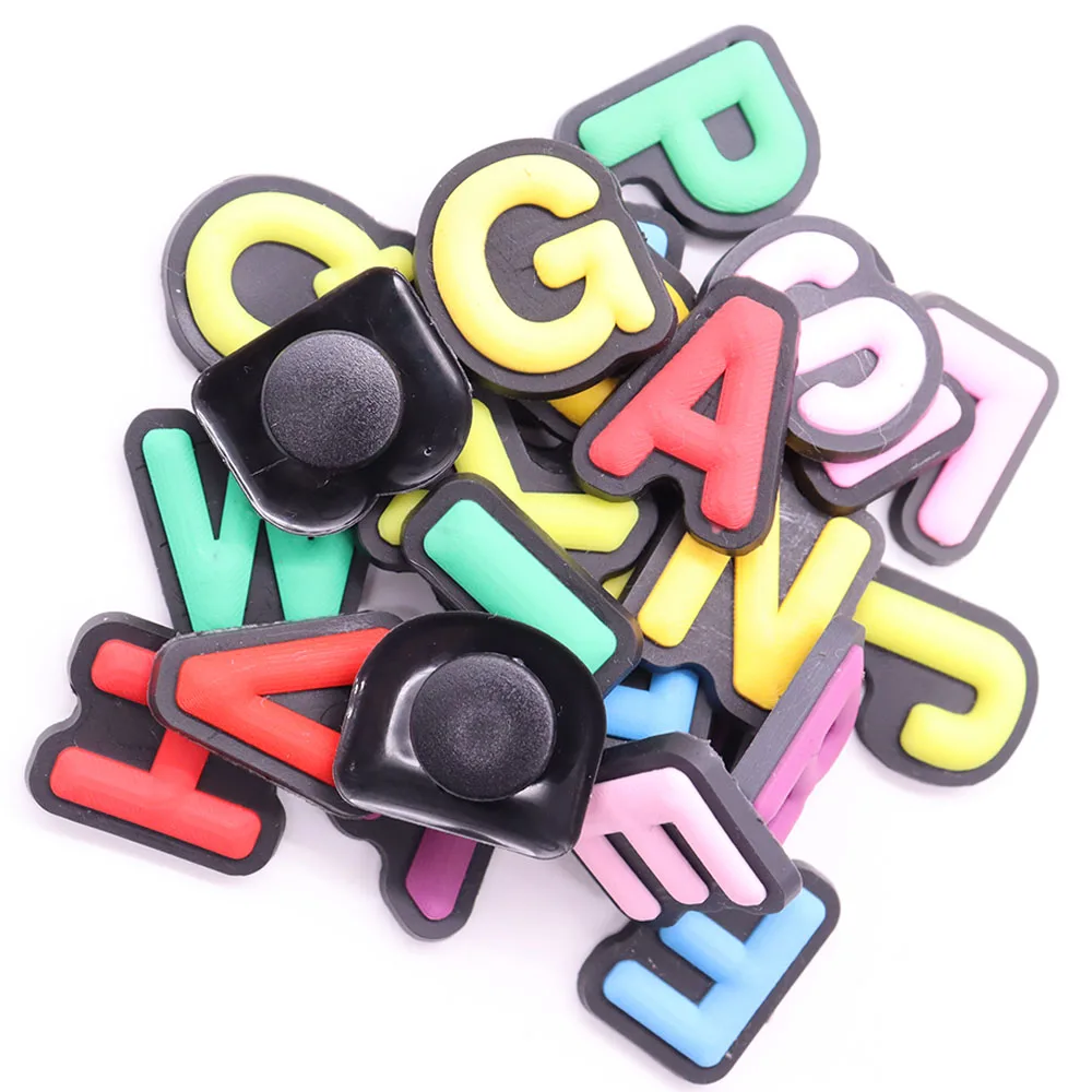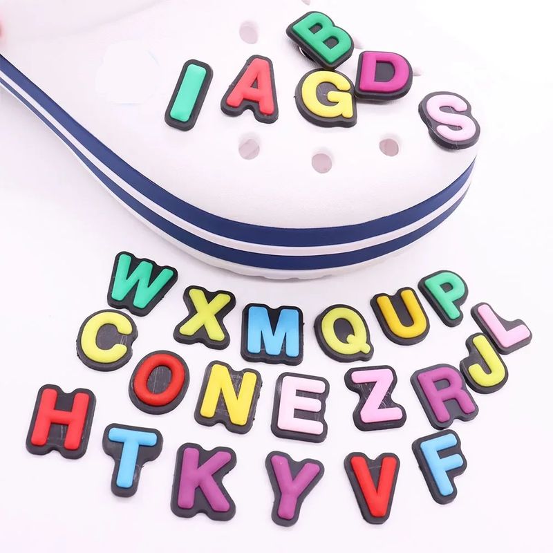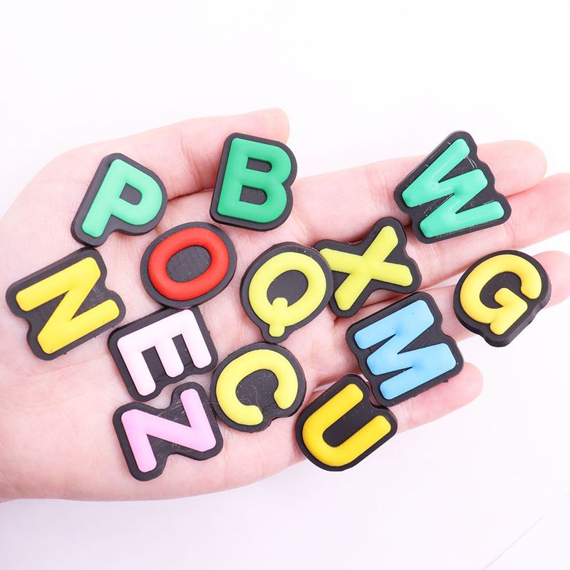 Hot Sale 1pcs Shoe Charms Colorful Twenty-six English Letters PVC Garden Shoes Buckle Decorations Accessories Kids X-max Gift