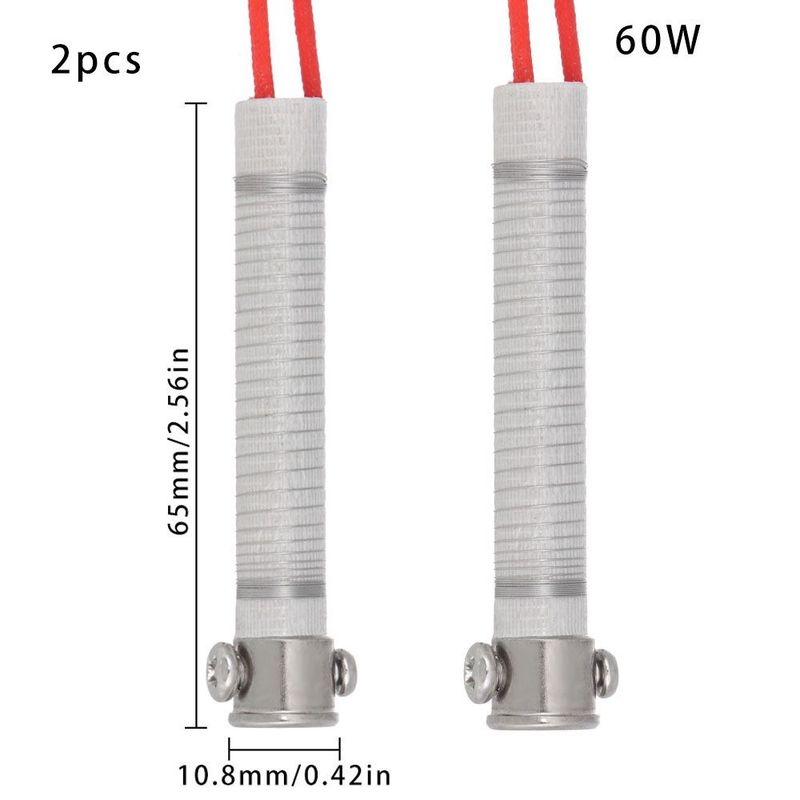 60W: Outer diameter:10.8mm.Inner Diameter:6.2mm,Length 195mm,Heating body length: 65mm, sleeve length 80mm, lead length 50mm