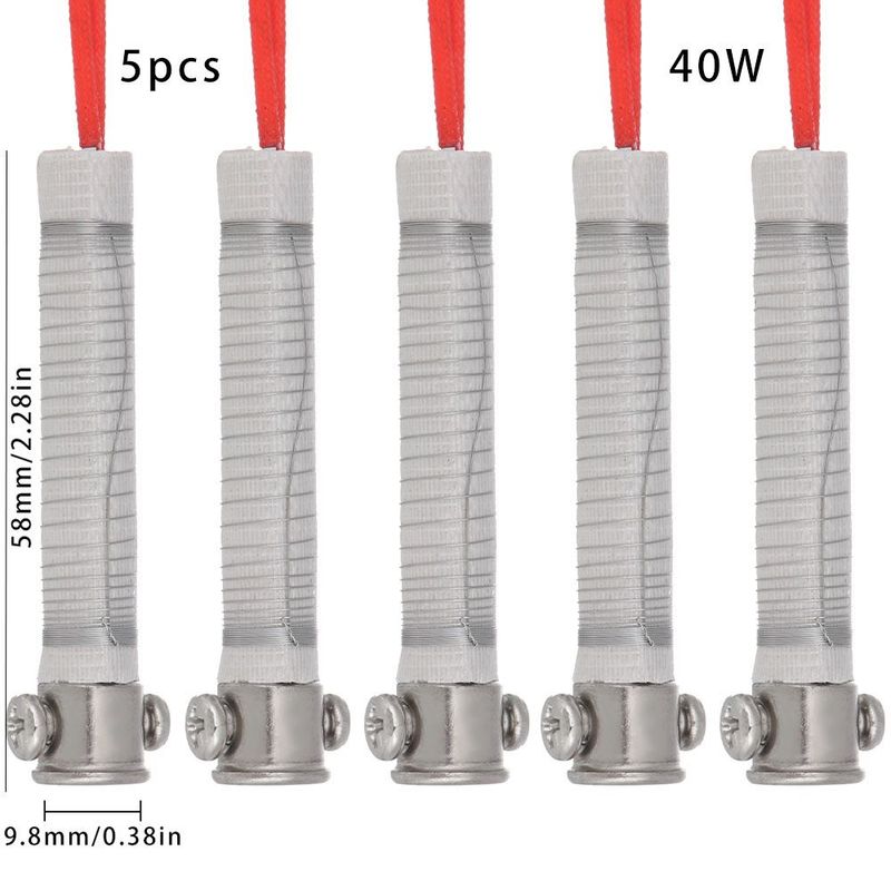 40W: Outer diameter:9.8mm.Inner Diameter:5.2mm,Length 180mm,Heating body length: 58mm, sleeve length 75mm, lead length 50mm