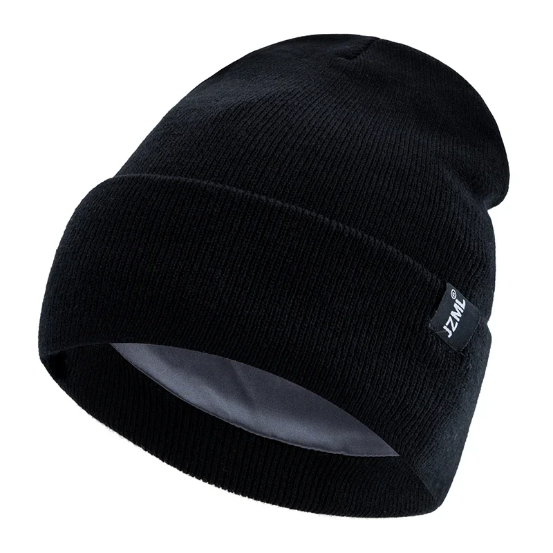 Hot Sale Letter Plush Satin Lined Anti-Static Beanie Hat Autumn&Winter Hats For Men And Women Outdoor Knitted Hats
