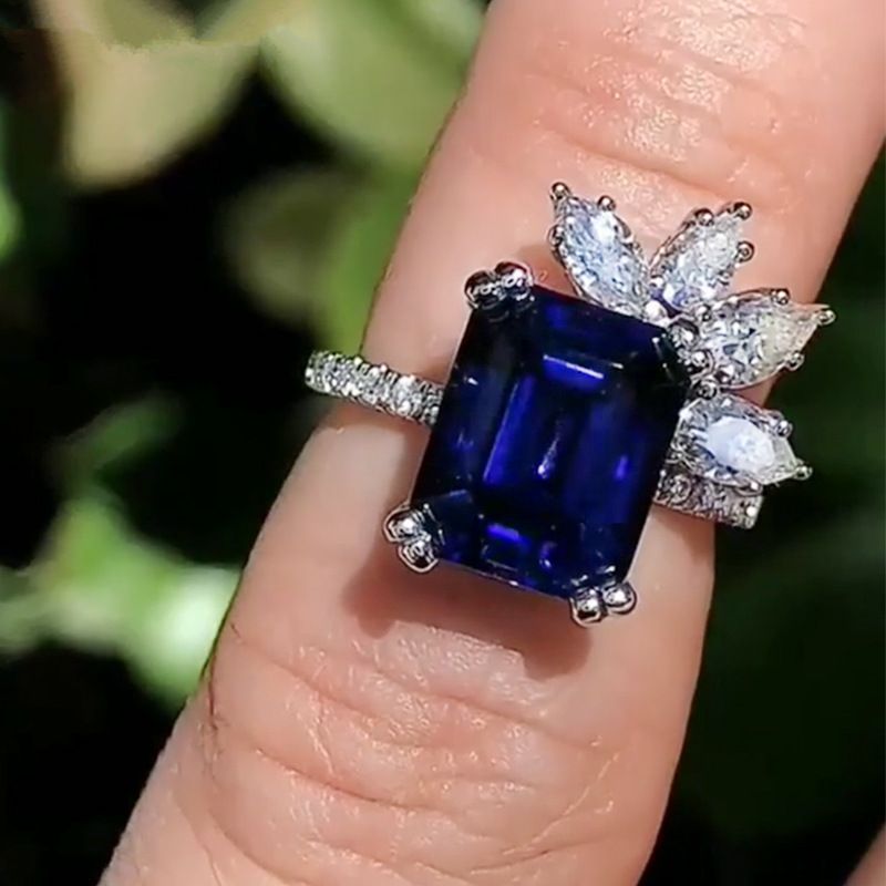Hot Sale Luxury Floral Ladies Ring Dark Blue No.10