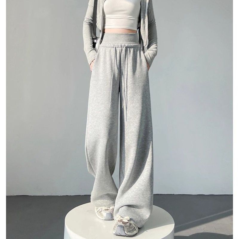 Hot Sale Women Classic High Waist Trousers Girls Loose Fit Wide Leg Casual Pants Female Chic Korean Home Daily Sweatpants