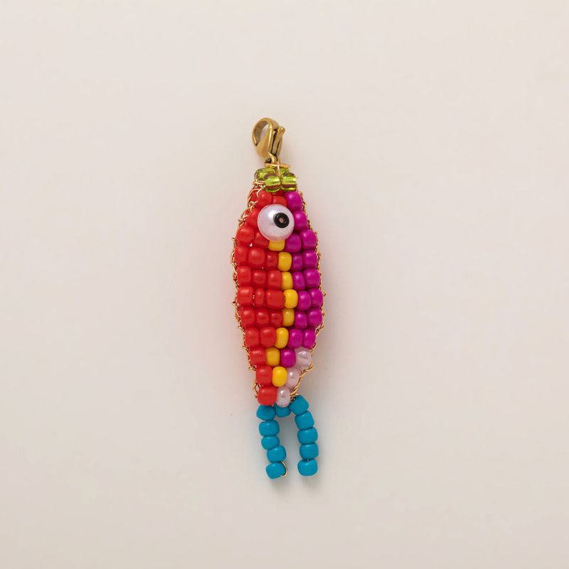 Hot selling colorful bead fish pendant keychain DIY dopamine color accessories cartoon charm pendant