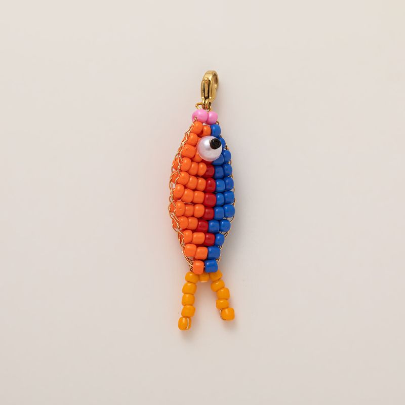 Hot selling colorful bead fish pendant keychain DIY dopamine color accessories cartoon charm pendant