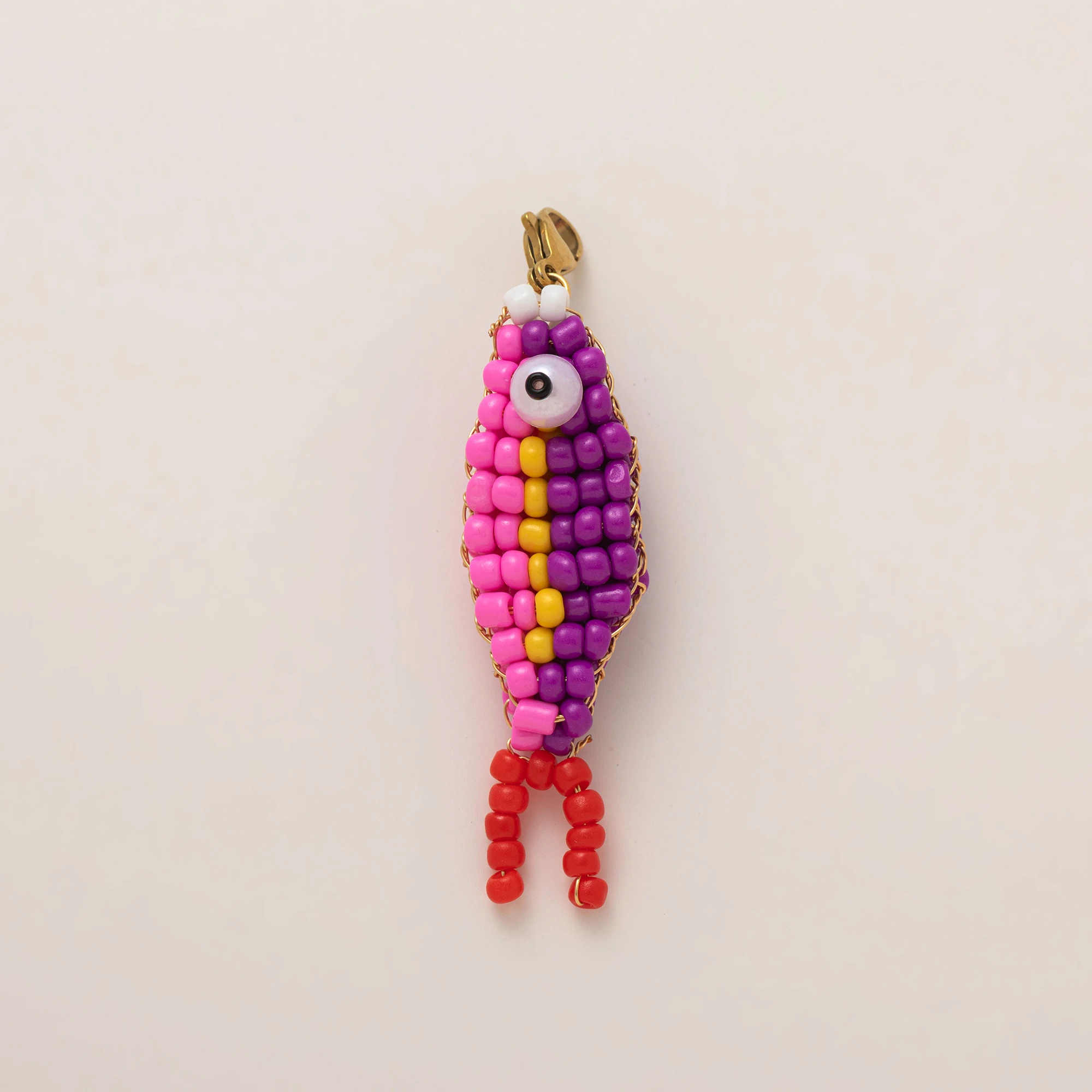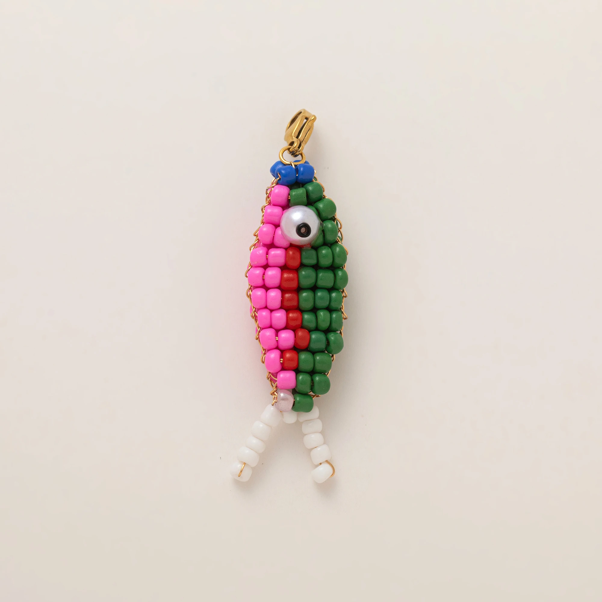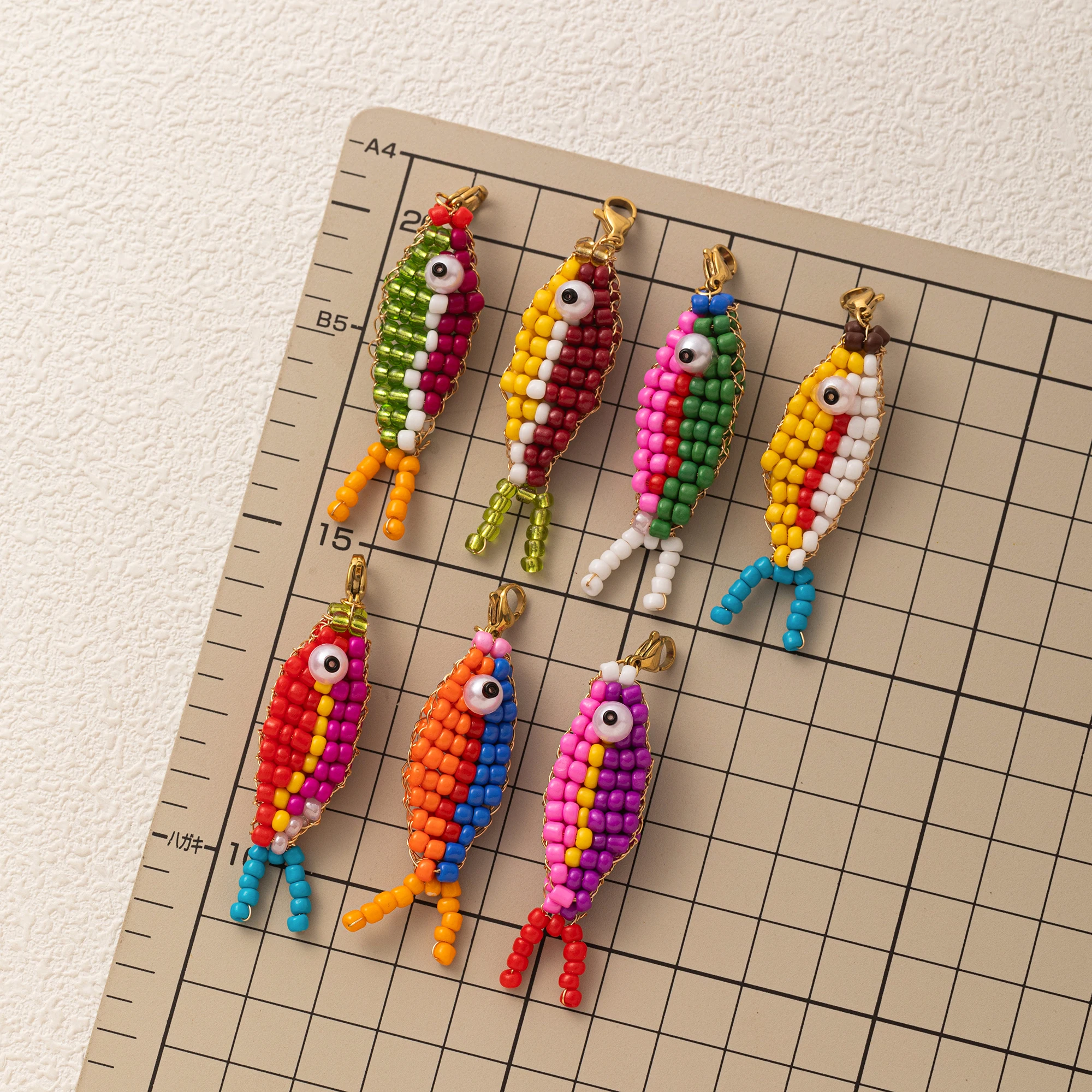 Hot selling colorful bead fish pendant keychain DIY dopamine color accessories cartoon charm pendant