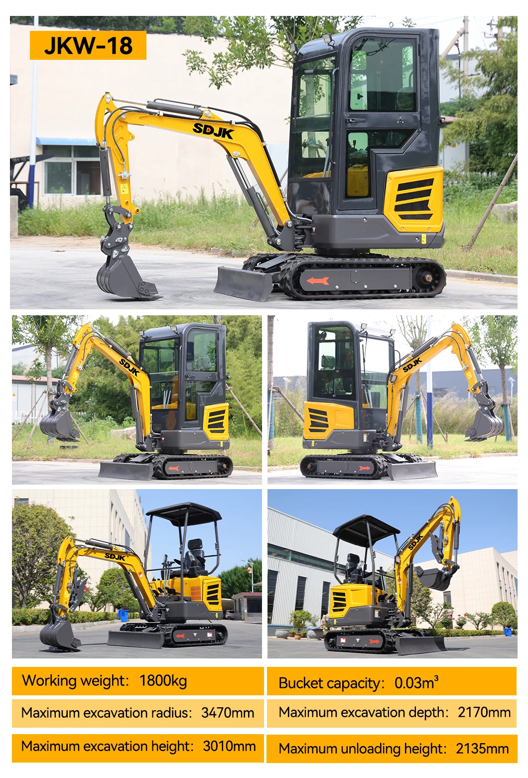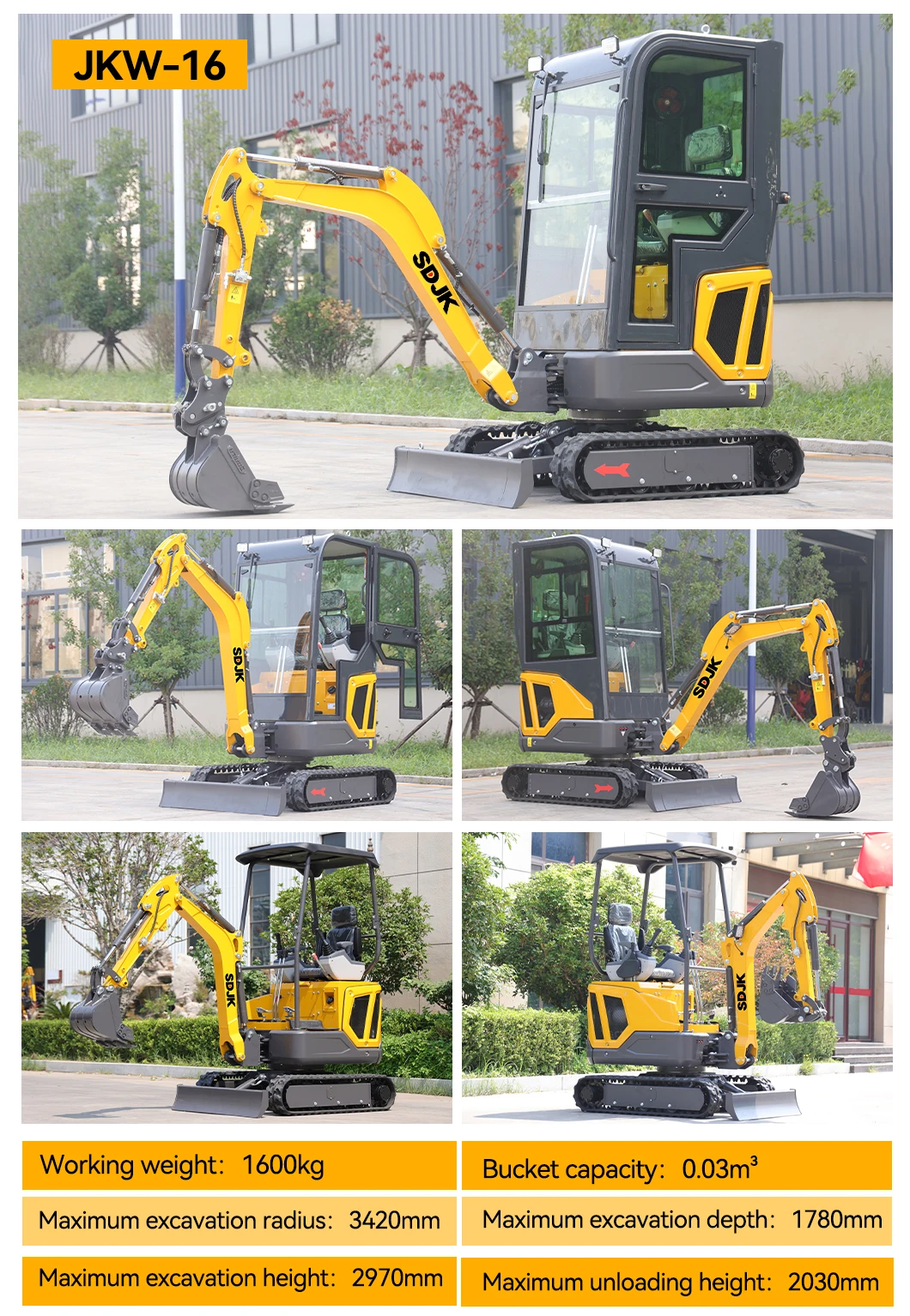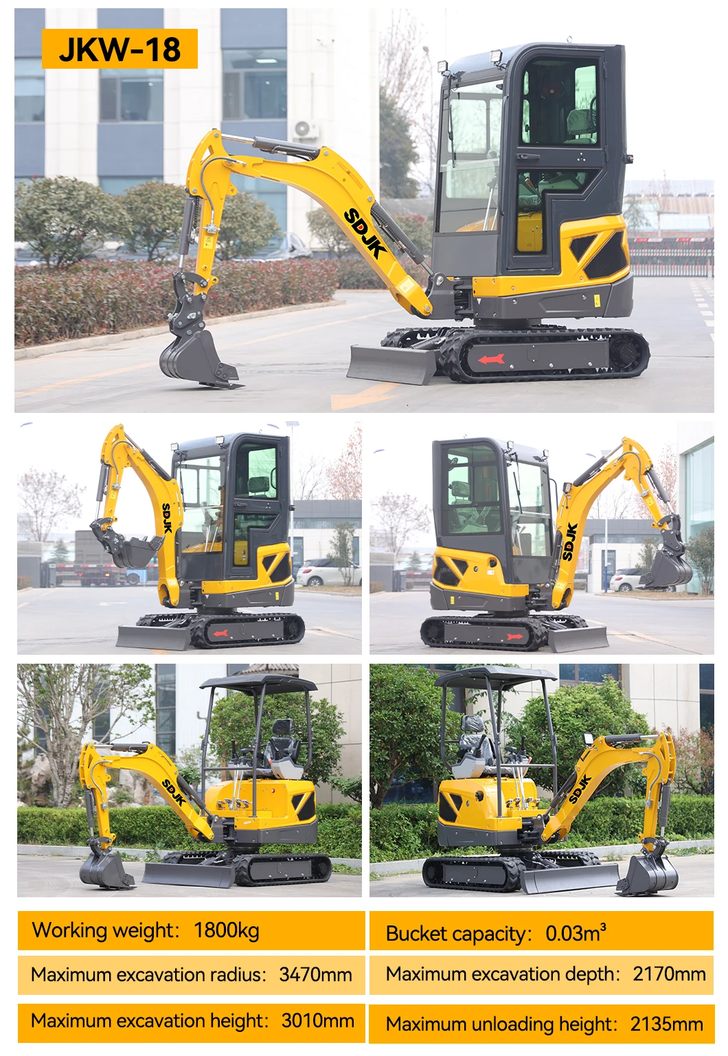 3. Attachments: Excavator with auger, grapple, hydraulic breaker, ripper, rake, tilt bucket, leveling bucket, rails, quick coupler, etc.