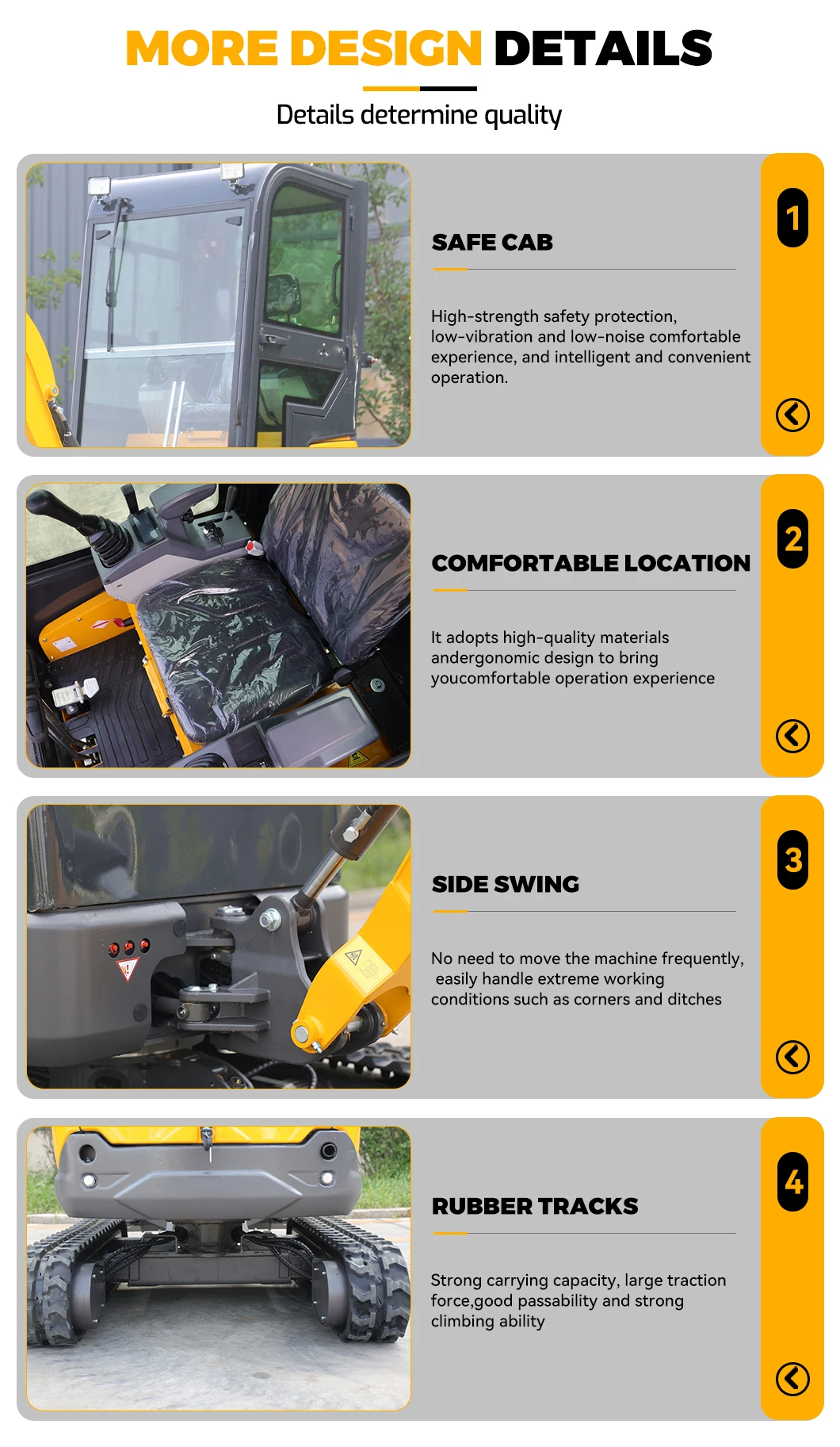 2. More features on the excavator: swing arm, pilot joystick