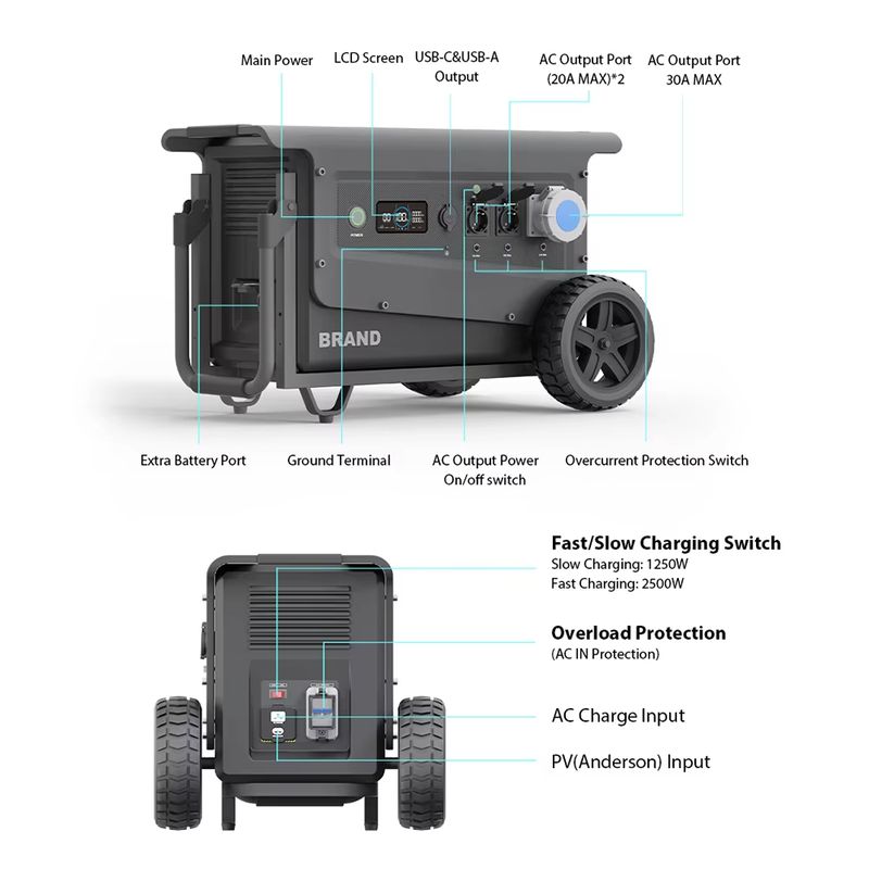 AC Charge Input:220~240Va.c 16A Max 2500W MaxPV(Anderson) Input:12~150Vd.c