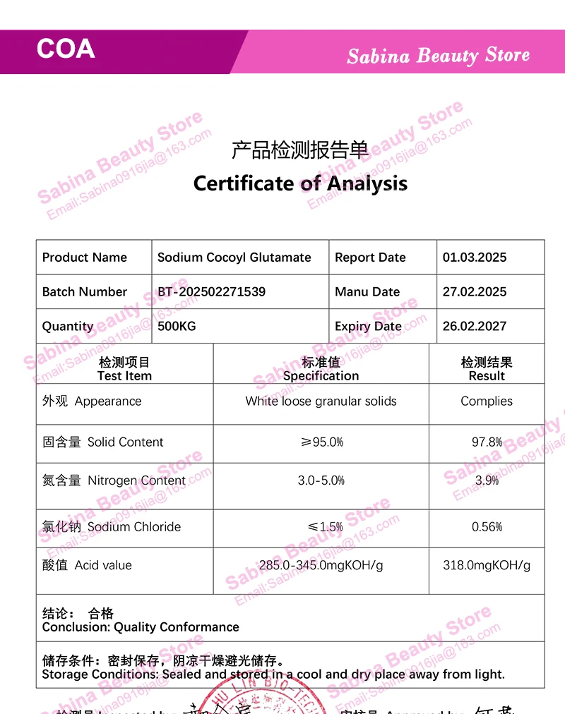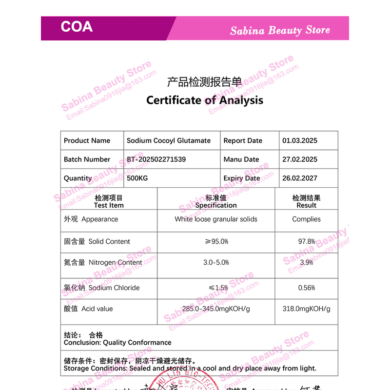 It is a very mild amino acid surfactant with high foaming ability under weak acidic to neutral conditions. When it is used with other surfactants, it has excellent synergistic effect, and can reduce the irritation of other surfactants and improve the bubble abilit