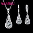 Hot Water Drop CZ 925 Sterling Silver Plated Jewelry Set For Women Pendant Necklace Hoop Earrings Wedding Party Ceremoey Anel
