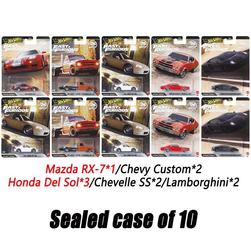 Hot Wheels HNW46-P Fast & Furious,Mazda RX-7 Chevy Honda Chevelle Lamborghini,1:64 Die-Cast Model,Collector's Gift Toys for kids