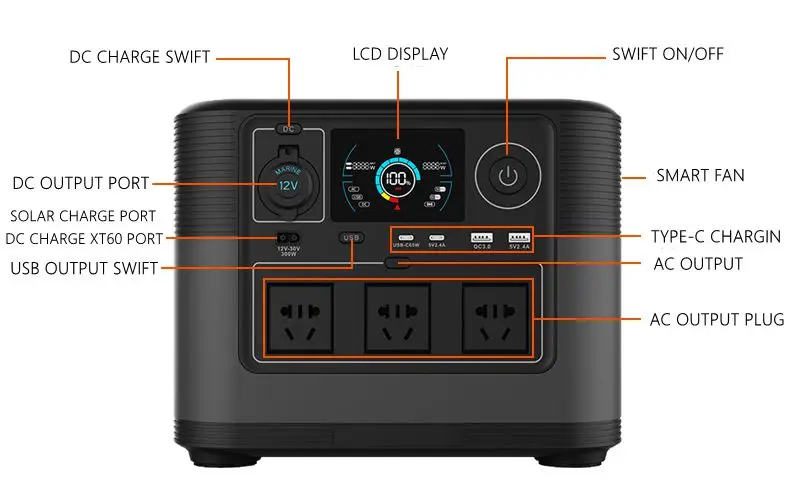 Support MPPT solar charging 300W 4 hours 200W 6.5 hours Power adapter: 200W/20V 6.5 hours |