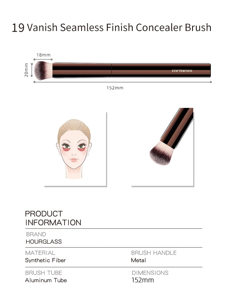 Hourglass Makeup Brush- No.19 Vanish Seamless Finish Concealer Brush Soft Fiber Hair Fashion Design Single Face Brush