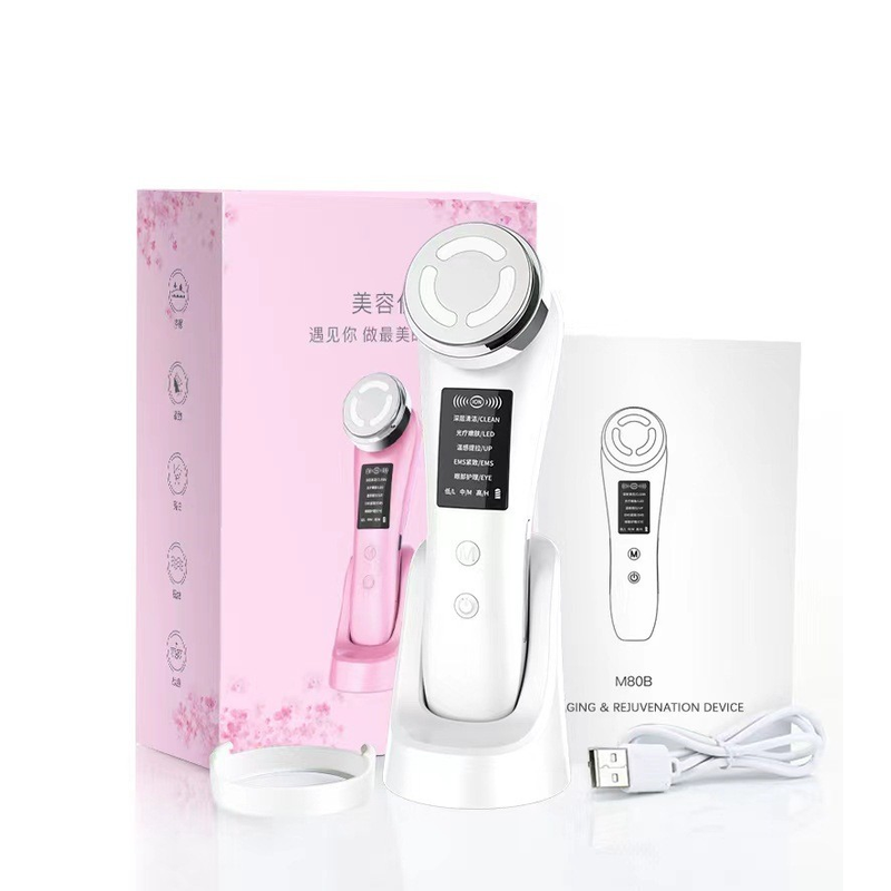 Household Color Light Beauty Instrument Micro-current Facial Massage Cleaning Four Modes White