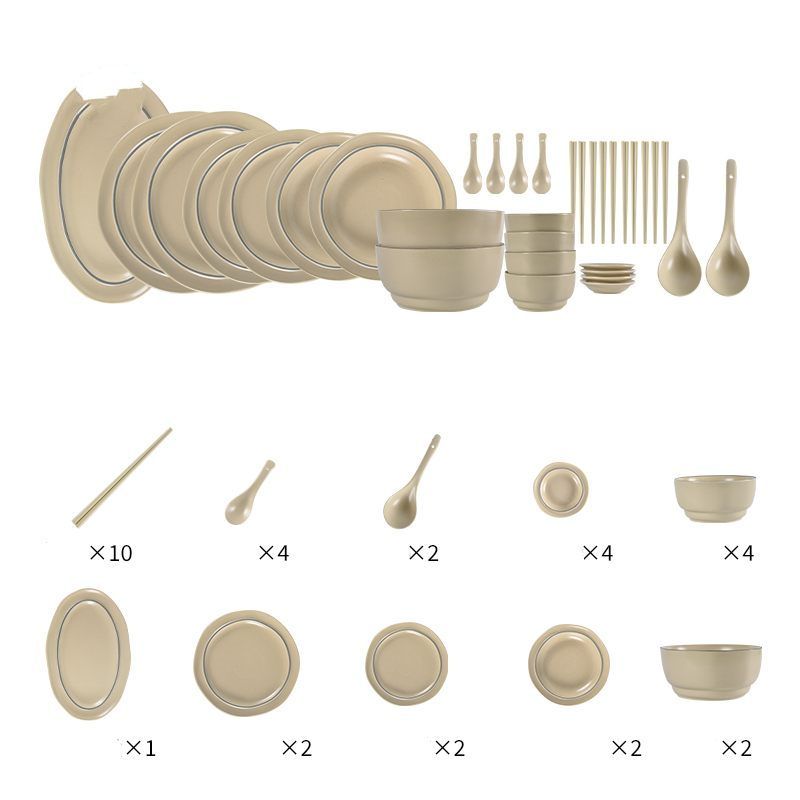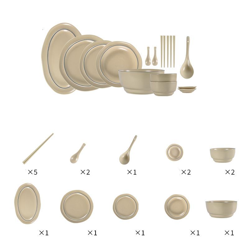 Color classification: Dipping dish, small spoon, rice bowl, chopsticks (1 box/5 pairs), soup spoon, soup bowl, small 8-inch vegetable dish, large 10-inch vegetable dish, 8-inch sauce vegetable dish, 12 inch fish dish, two person set, four person set