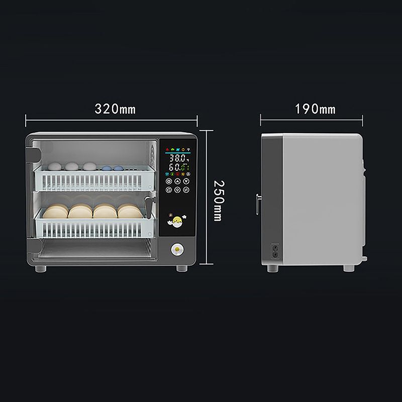 * Continuous moisturizing: The humidifier uses cotton evaporation and ultrasonic atomization to double humidify, and the humidity control is extremely accurate, ensuring the humidity requirements required at each stage of the hatching process, and effectively improving the hatching rate.