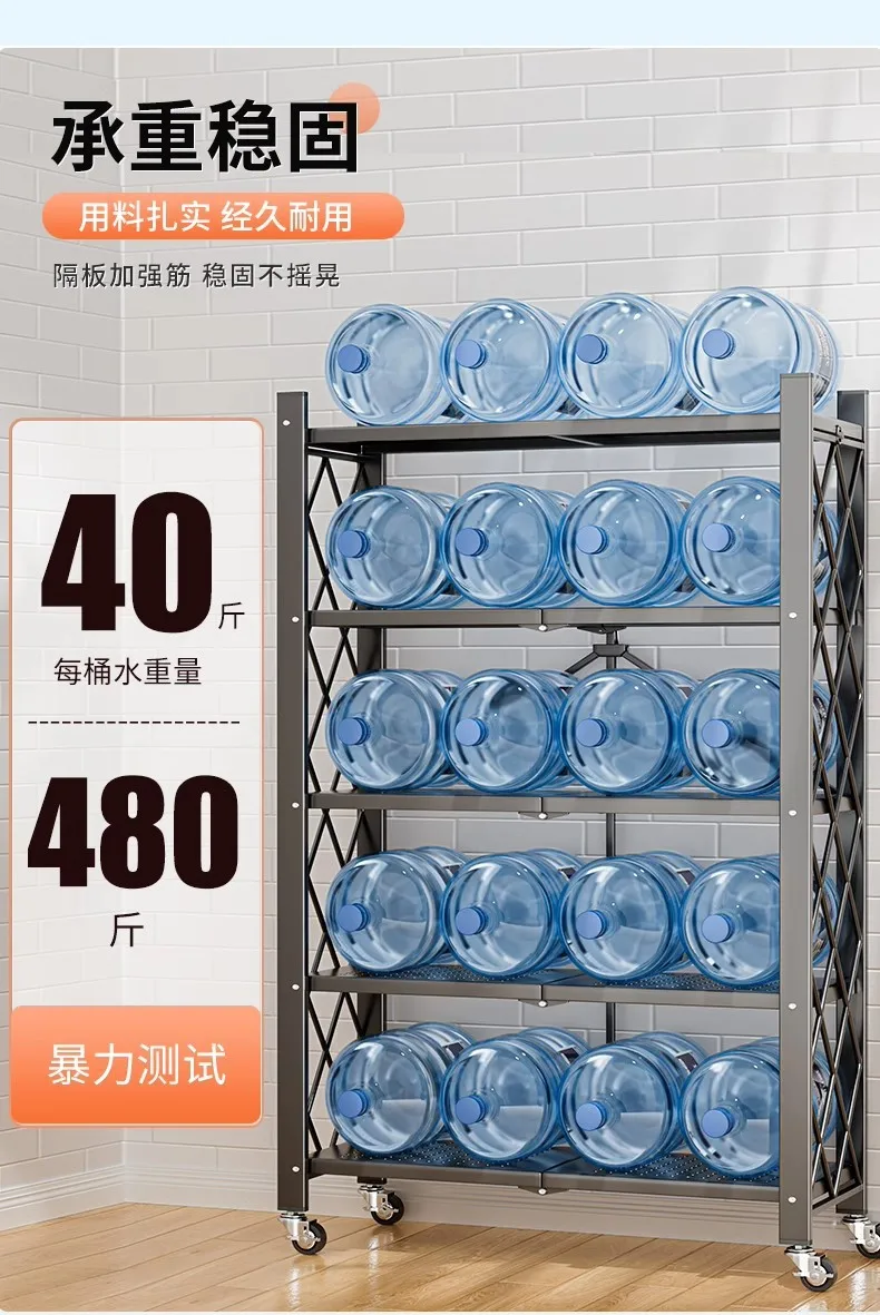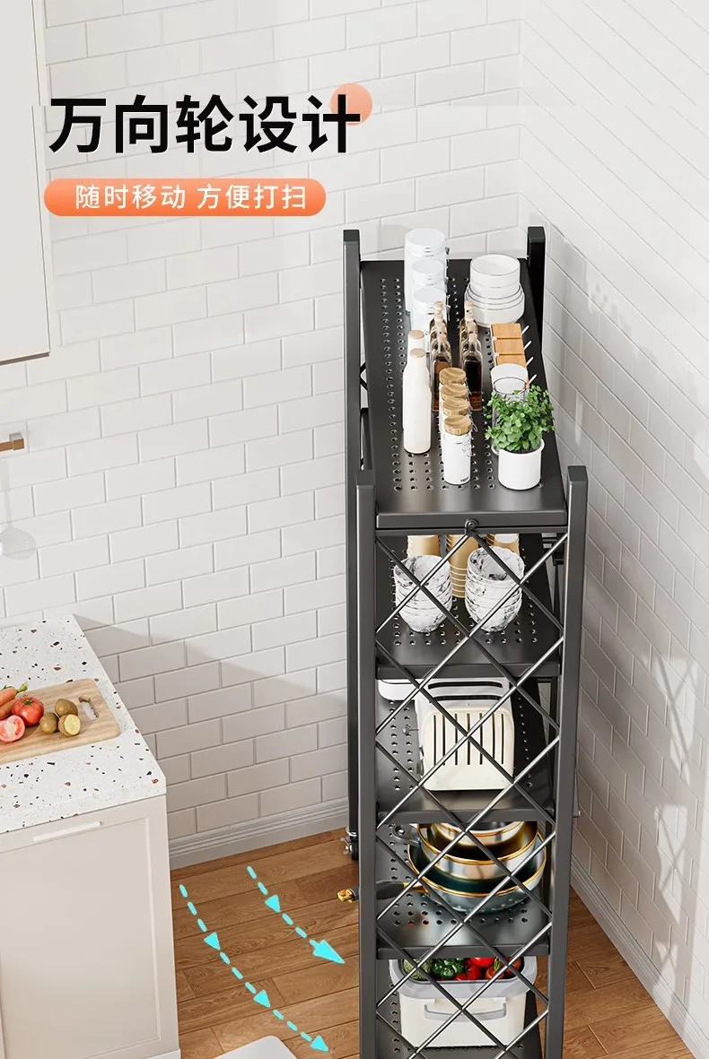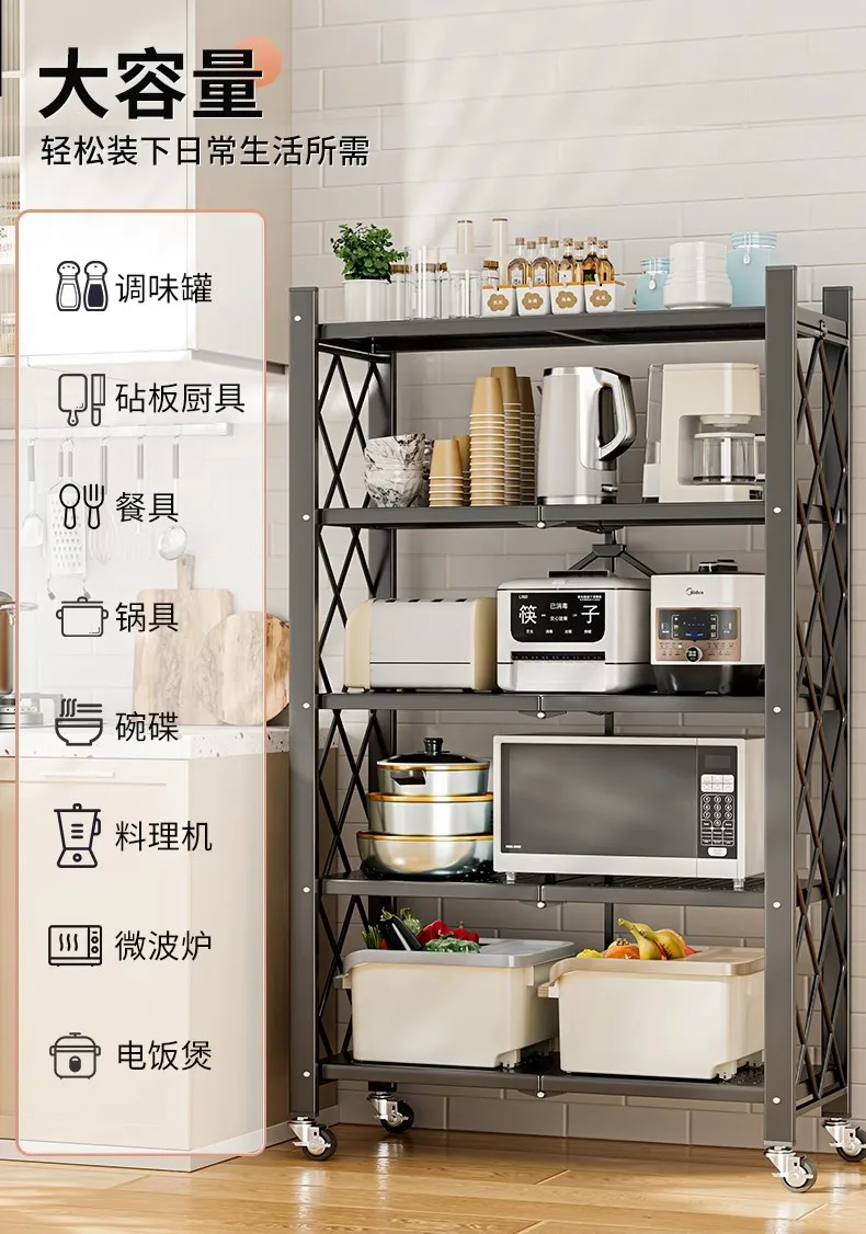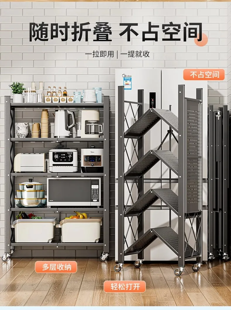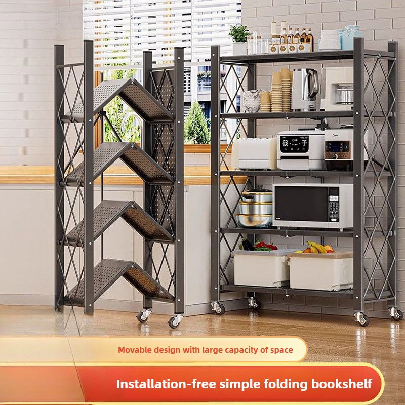 Household Installation-free Simple Folding Rack Kitchen Floor Removable Storage Rack Wrought Iron Multi-layer Storage Racks