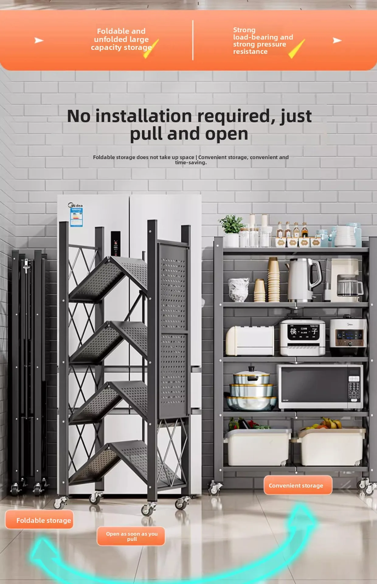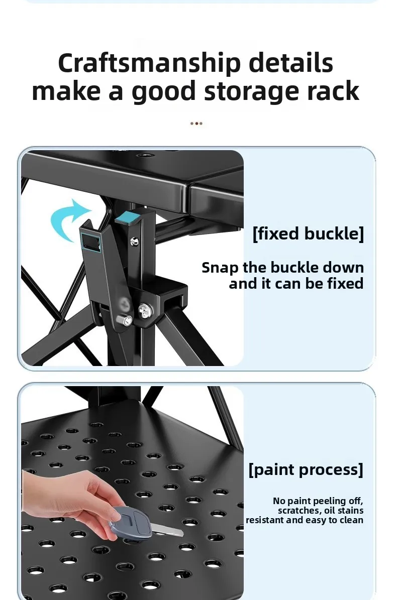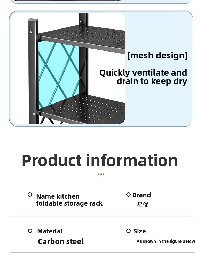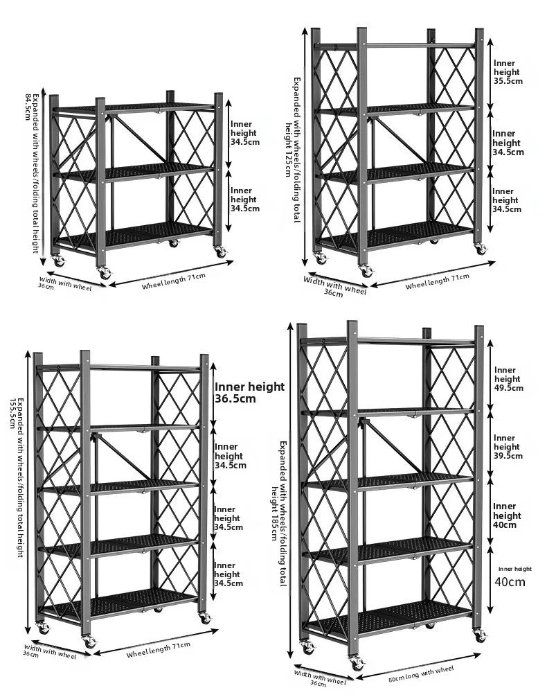 Household Installation-free Simple Folding Rack Kitchen Floor Removable Storage Rack Wrought Iron Multi-layer Storage Racks