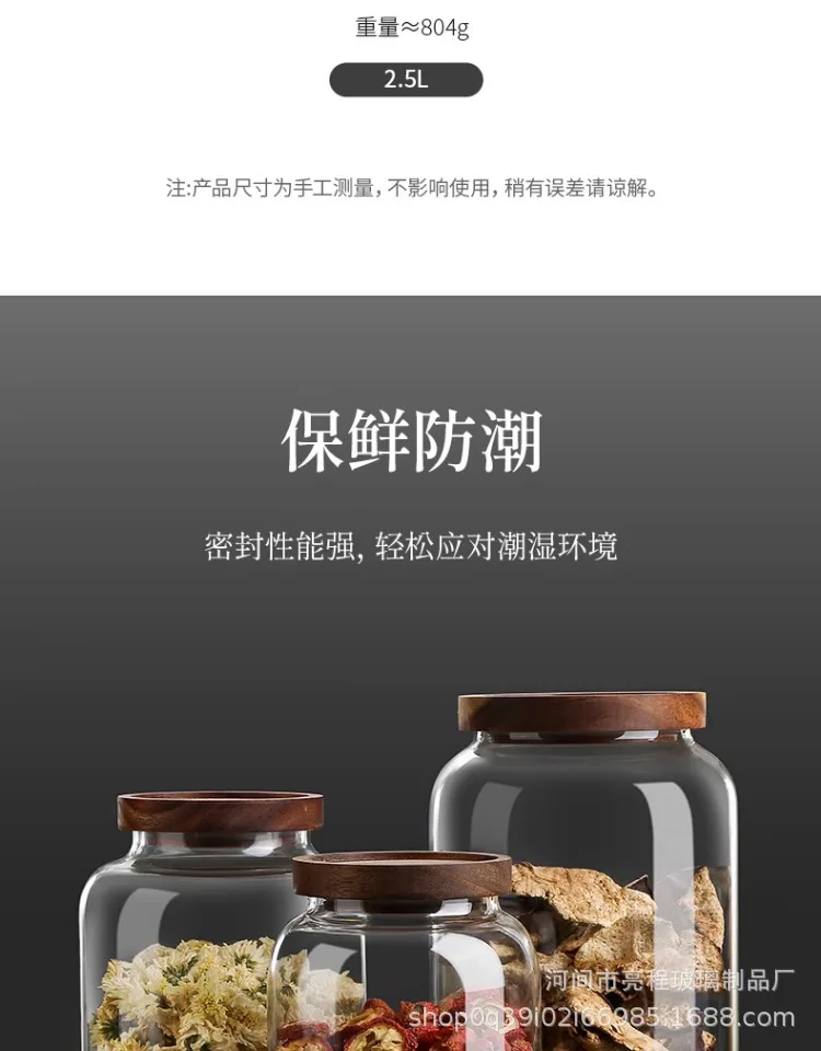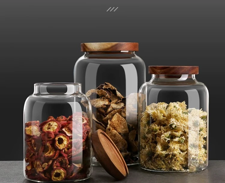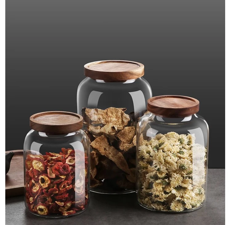 Household Kitchen High Borosilicate Glass Sealing Jar Large Storage Tank with Lid Moisture Proof Round Transparent Tea Can