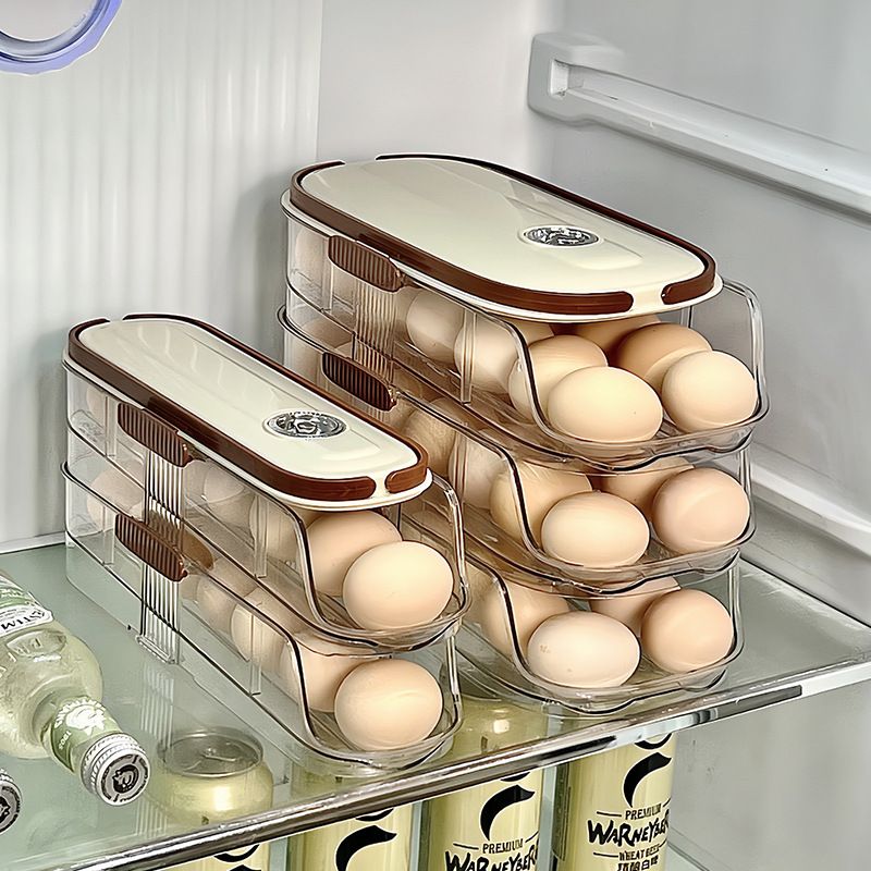 Household Multi-layer Automatic Rolling Egg Storage Box Kitchen Egg Rack Tray Refrigerator Timing Special Egg Carton